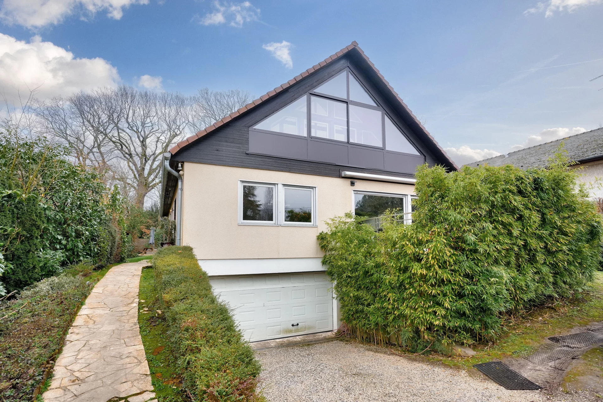 À l’abri des regards, dans un environnement résidentiel agréable et recherché, cette maison des années 1970 séduit par ses volumes généreux, sa luminosité et son jardin arboré de 818m².
