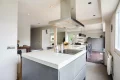 La circulation y est fluide et naturelle entre la cuisine ouverte, l’espace dînatoire, prolongé par la terrasse, et le salon cosy, sublimé par une cheminée, largement ouvert sur le jardin.
