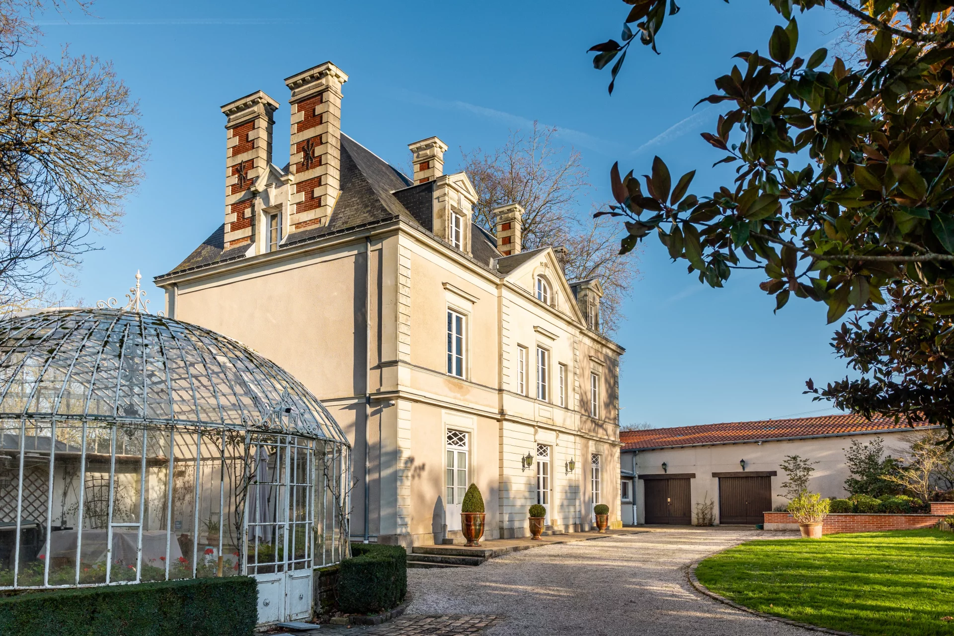Dans un environnement d'exception, à deux pas des centres-villes de Vertou et Saint-Fiacre-sur-Maine, cette demeure se dévoile telle une invitation à l'art de vivre ligérien. Édifiée en 1869, cette maison de maître néo-classique incarne l'élégance architecturale du Second Empire avec sa symétrie parfaite à trois travées, ses chaînes d'angle en pierre de taille et son avant-corps central couronné d'un fronton triangulaire. Constamment restaurée depuis 1985, la demeure a su préserver son âme tout en s'enrichissant du confort contemporain.