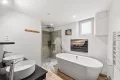 Au rez-de-chaussée, l’organisation privilégie le confort avec une chambre de plain-pied, ainsi qu’une pièce pouvant faire office de bureau ou de chambre selon les besoins. Le salon et la salle à manger, réunis autour d’une cheminée, offrent un espace de vie convivial. La cuisine, fermée, permet de préserver des espaces distincts. Une buanderie indépendante complète ce niveau. Une salle de bains avec douche ainsi que des toilettes séparées viennent parfaire l’agencement du rez-de-chaussée.