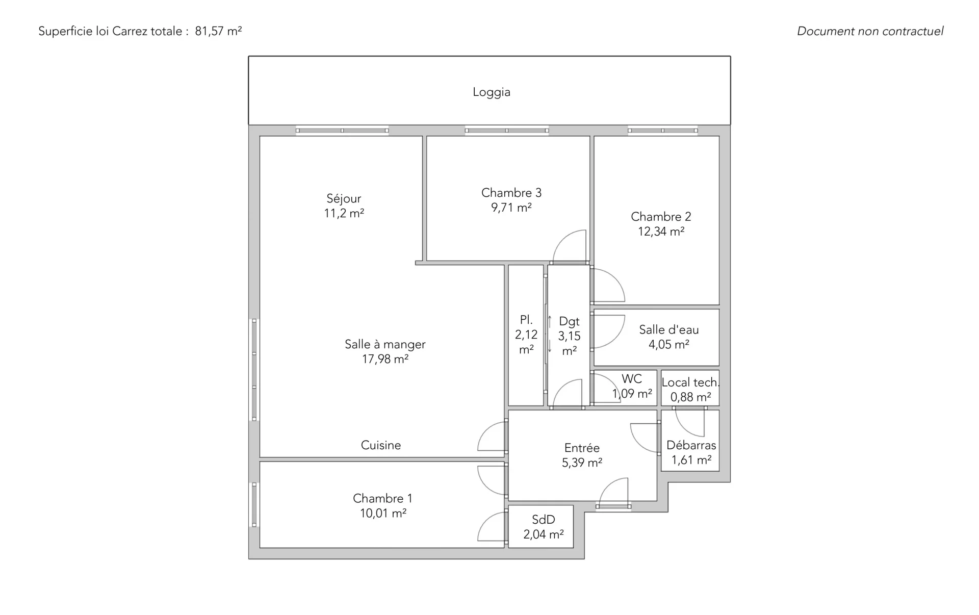 | 1x Cuisine | 10.01 m² | Étage : 5ème |