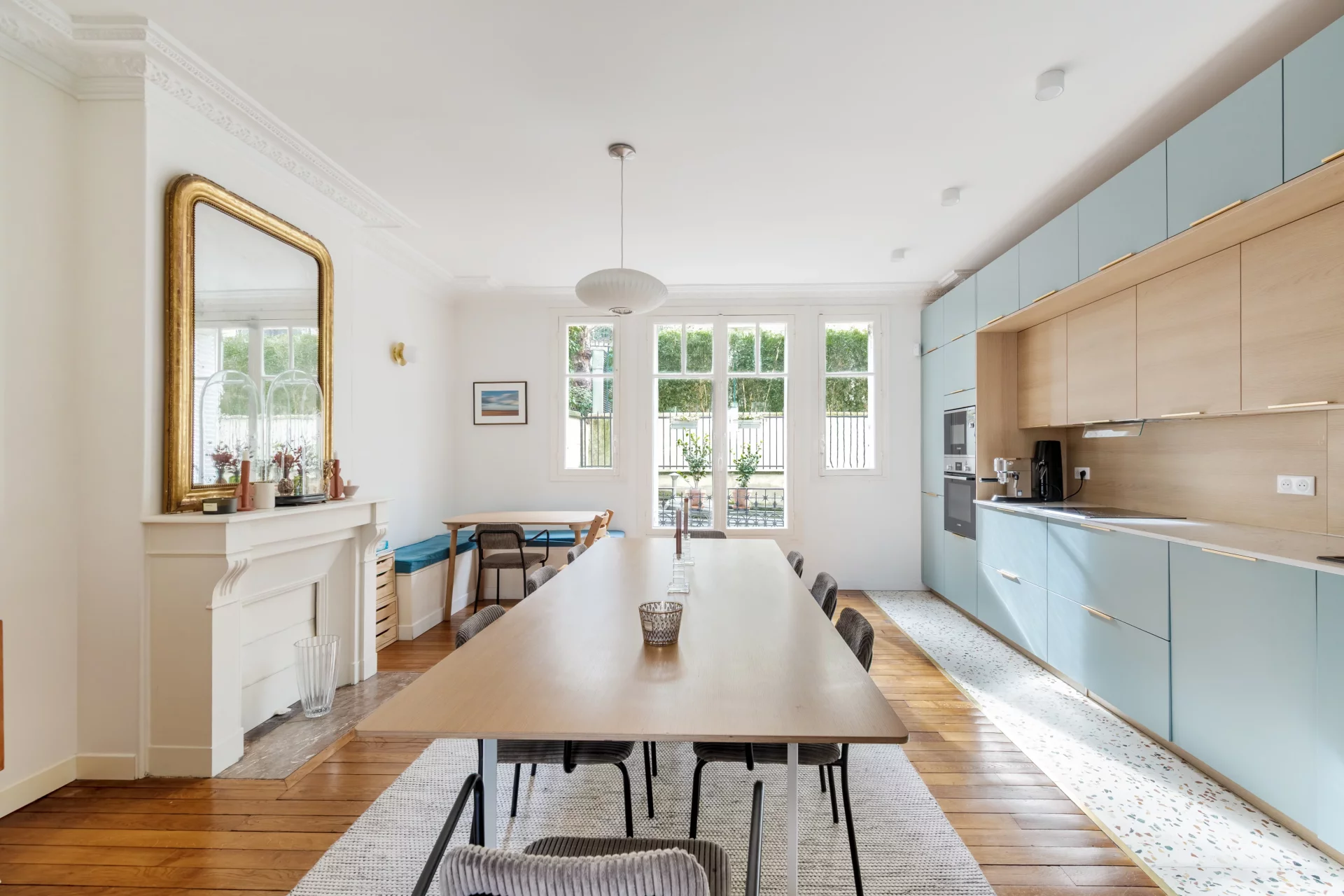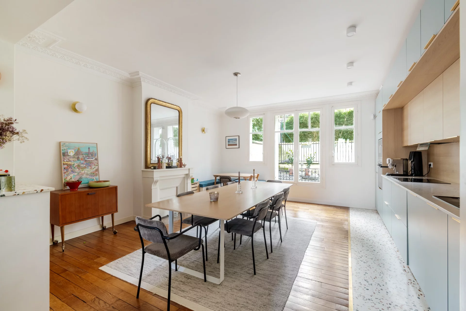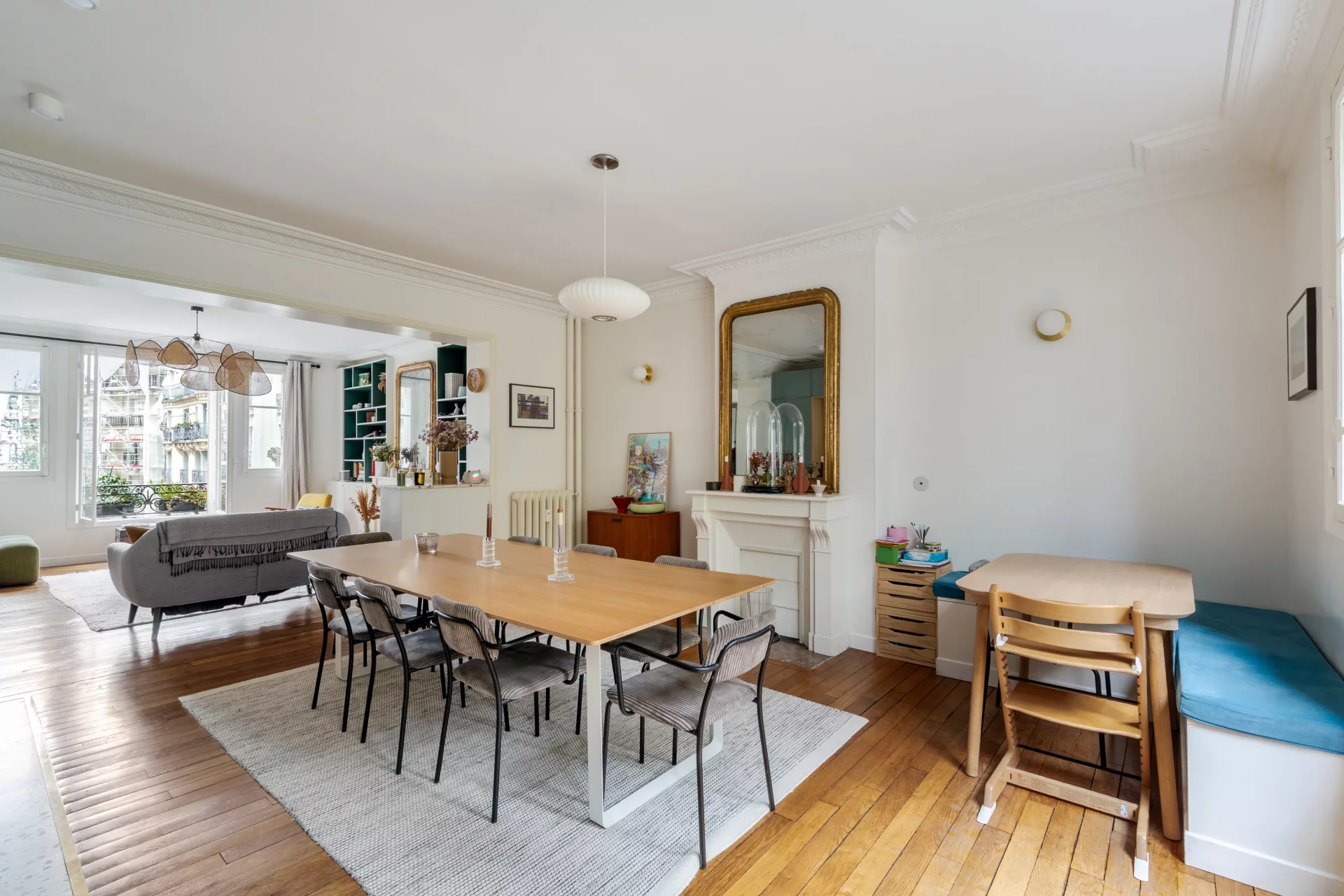 Au 1er étage par ascenseur d'un bel immeuble de standing, superbe appartement familial et traversant de 114,68m² loi Carrez (116,24m² au sol), parfaitement rénové et offrant de très beaux volumes.