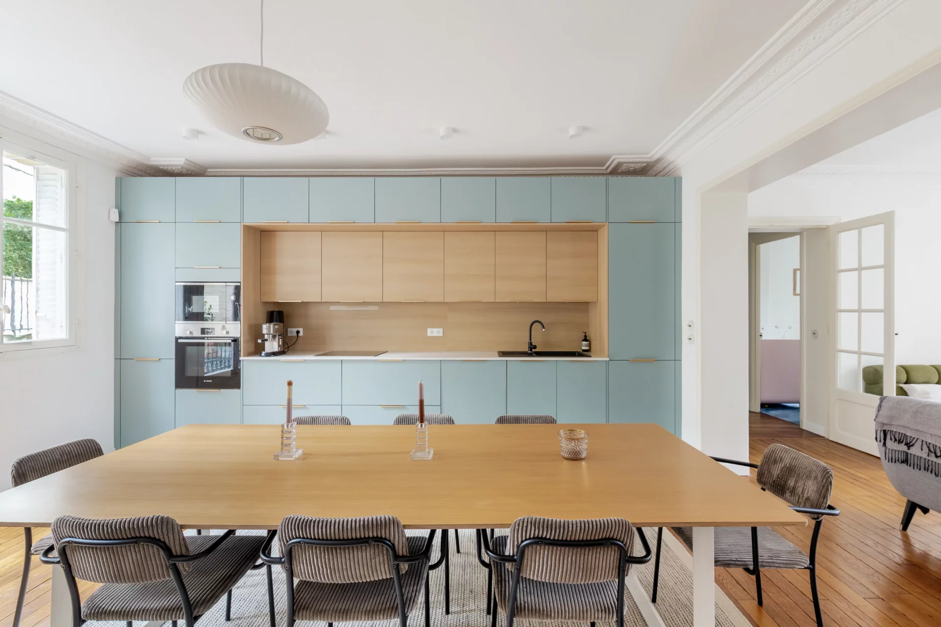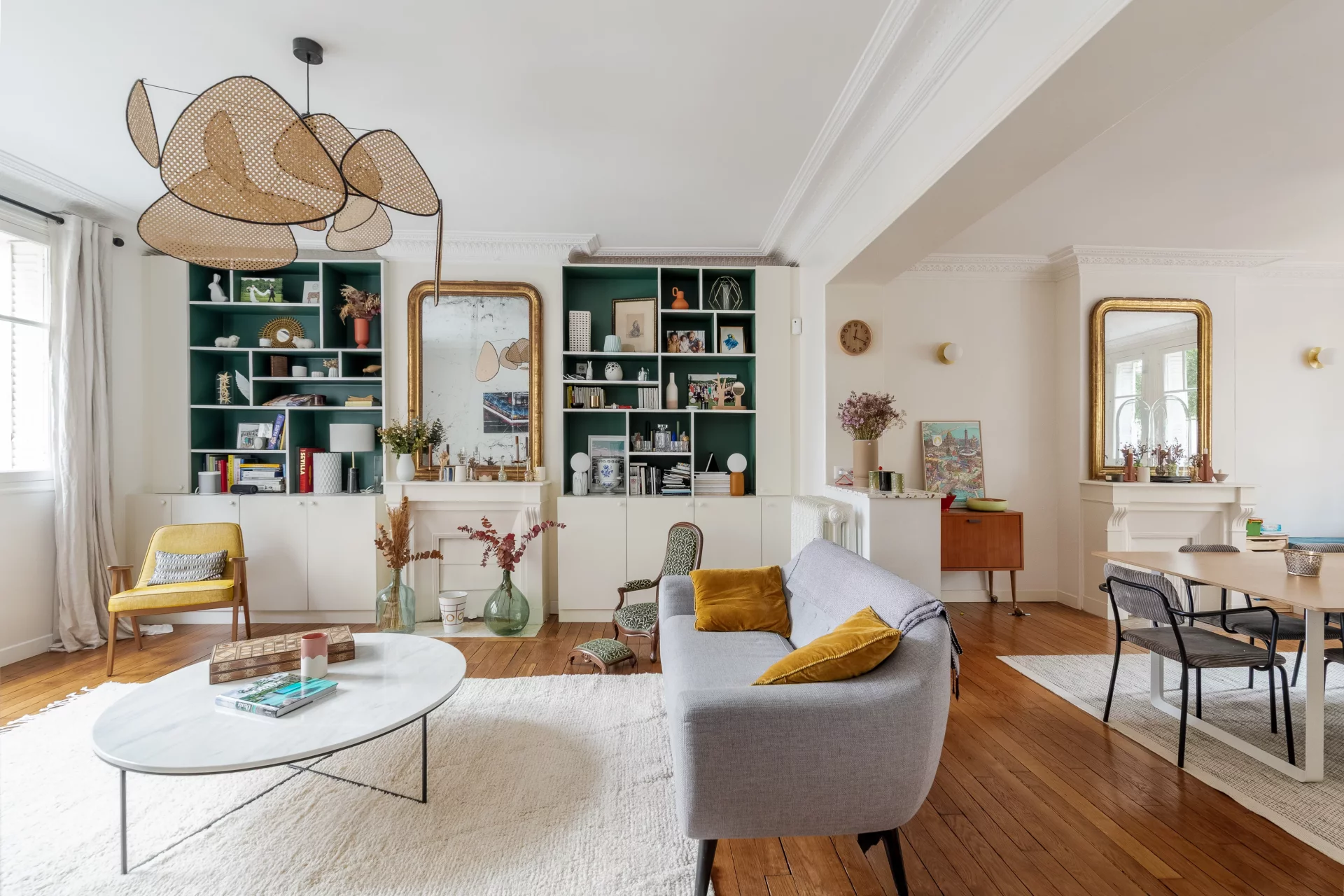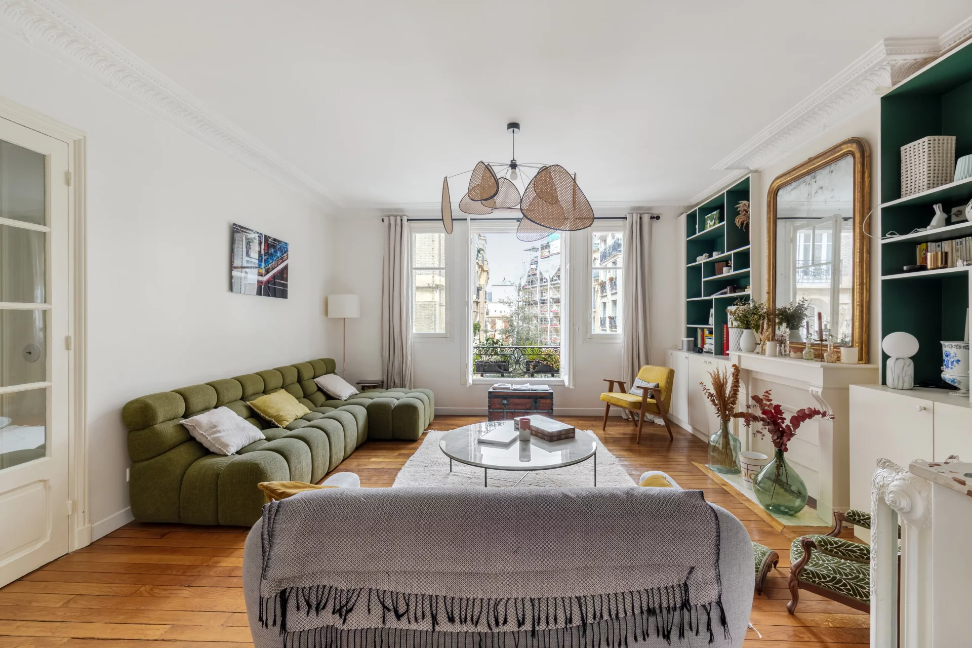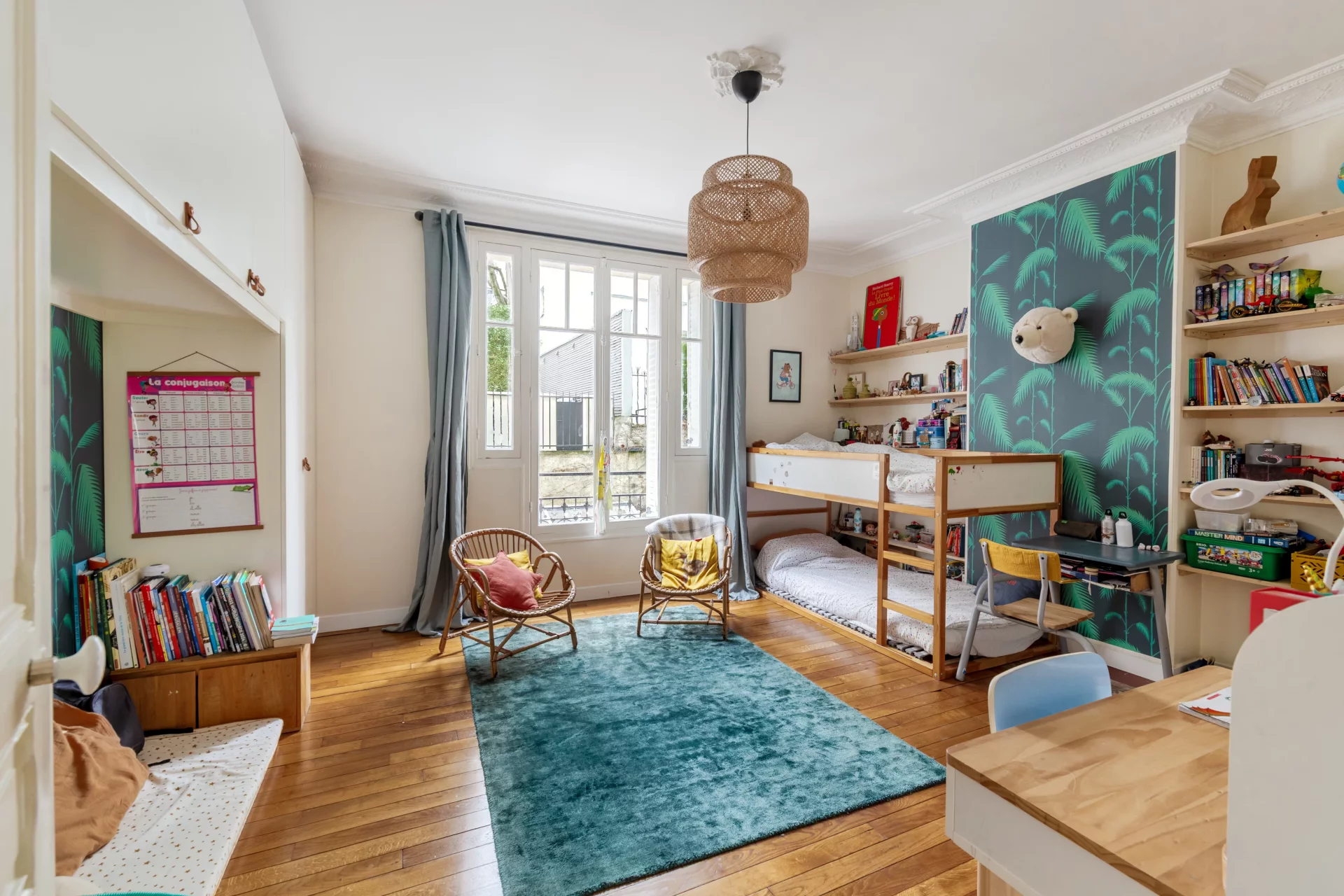 Au 1er étage par ascenseur d'un bel immeuble de standing, superbe appartement familial et traversant de 114,68m² loi Carrez (116,24m² au sol), parfaitement rénové et offrant de très beaux volumes.