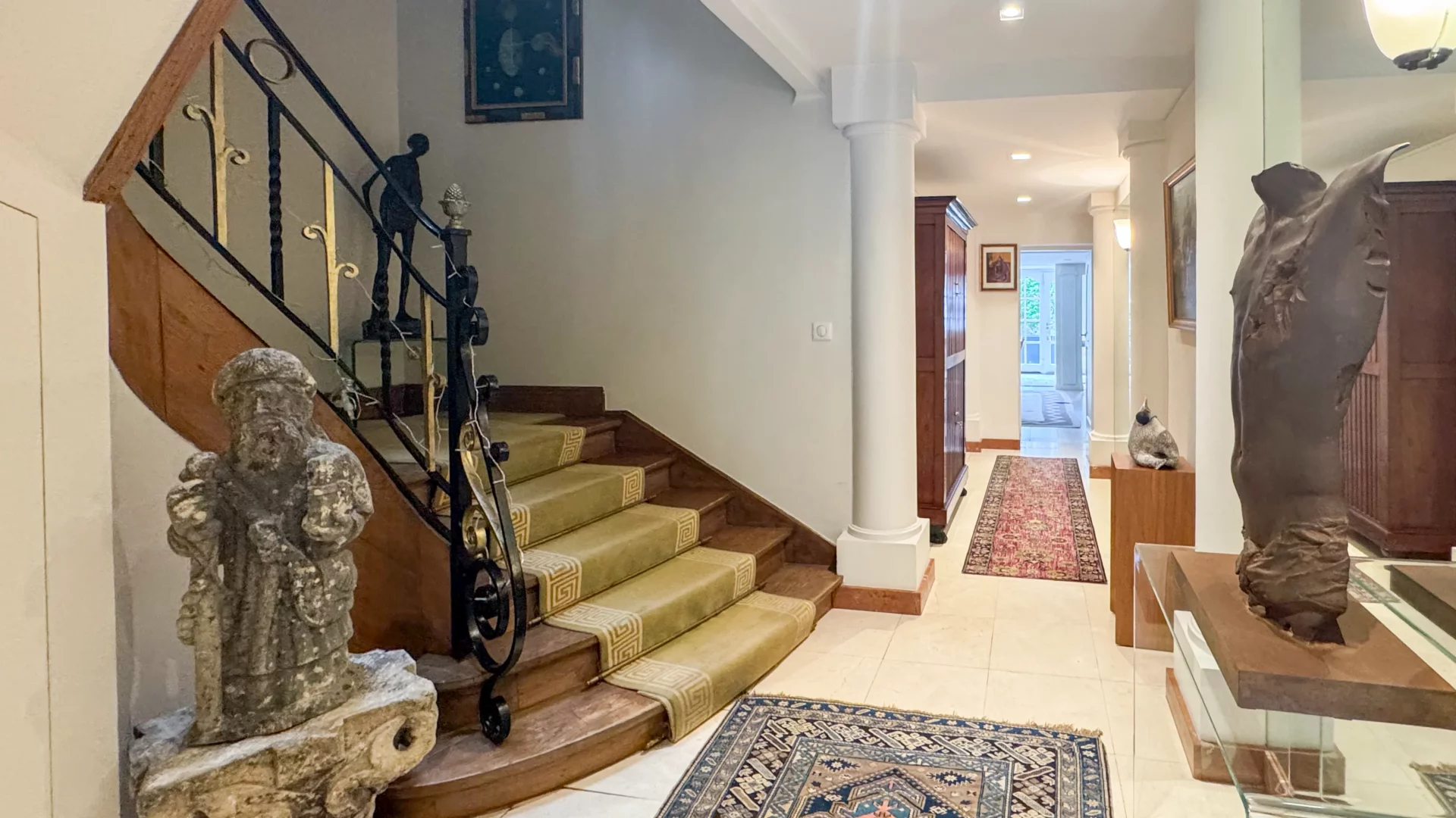 Les étages supérieurs accueillent cinq chambres et trois salles de bains, offrant un confort idéal pour une vie de famille.