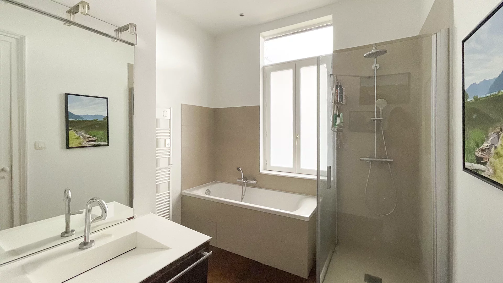 Dès l’entrée, vous découvrirez une belle pièce de vie lumineuse, sublimée par une cheminée feu de bois, offrant une atmosphère chaleureuse et conviviale. La cuisine séparée, entièrement équipée, s’ouvre sur un agréable jardin, véritable havre de paix pour profiter des beaux jours. Un espace bureau complète ce niveau.