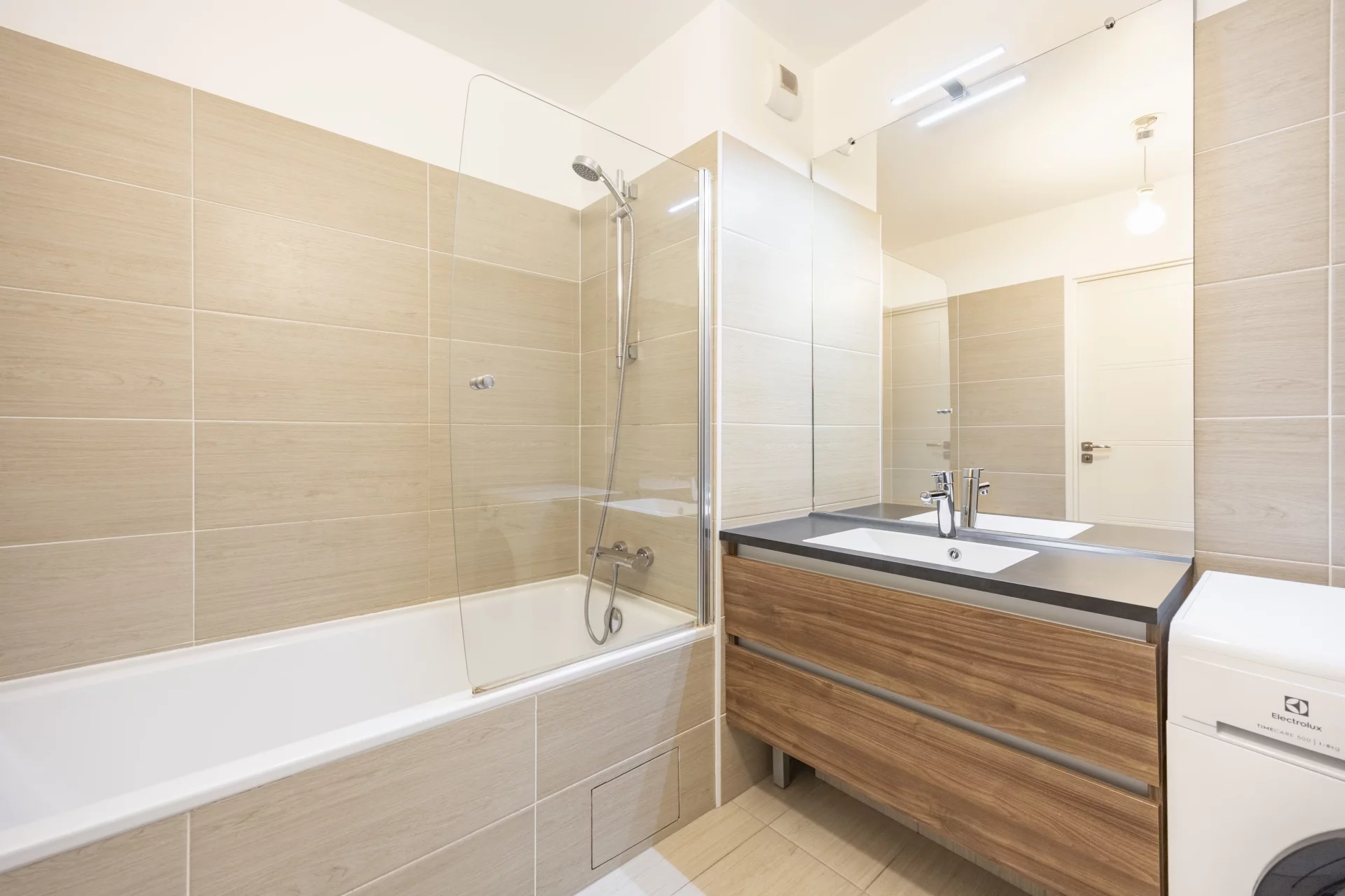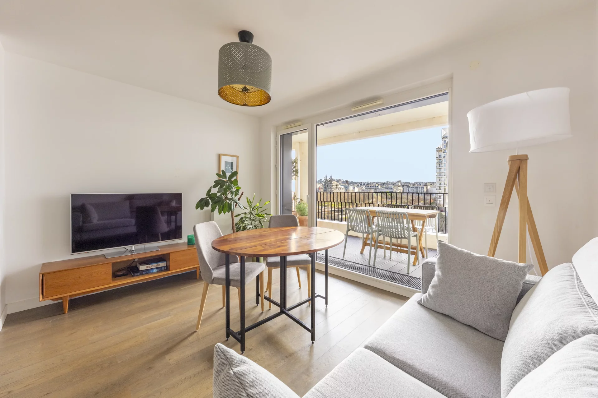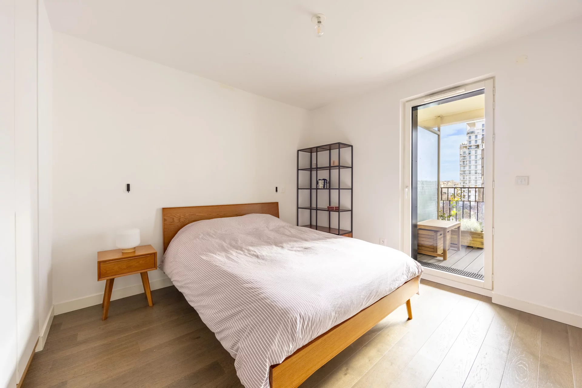 Il comporte un séjour avec espace salle à manger donnant sur une belle terrasse de 15m², une cuisine semi-ouverte aménagée et équipée, deux chambres dont une avec dressing attenant, une salle de bains et des toilettes séparées.
