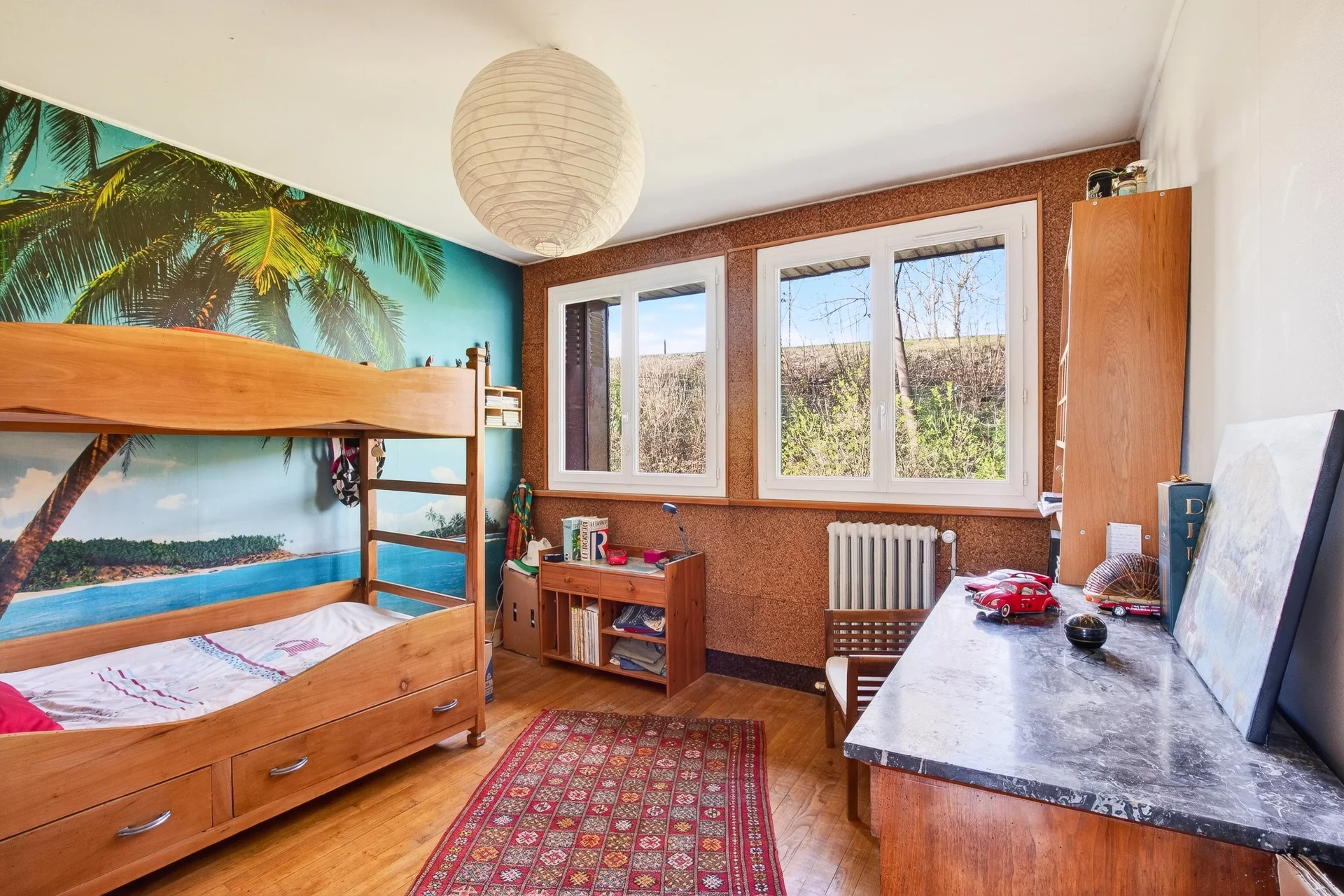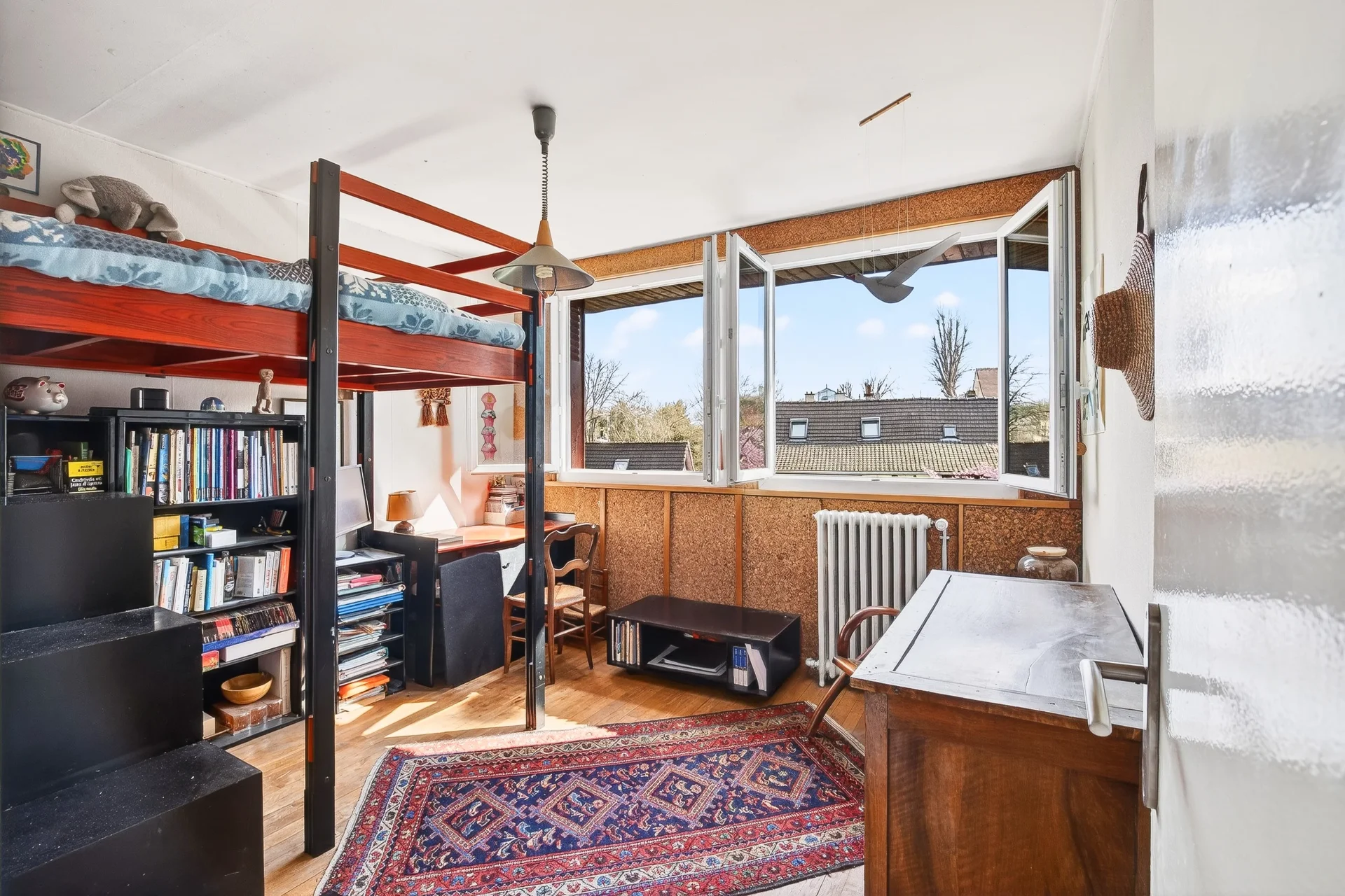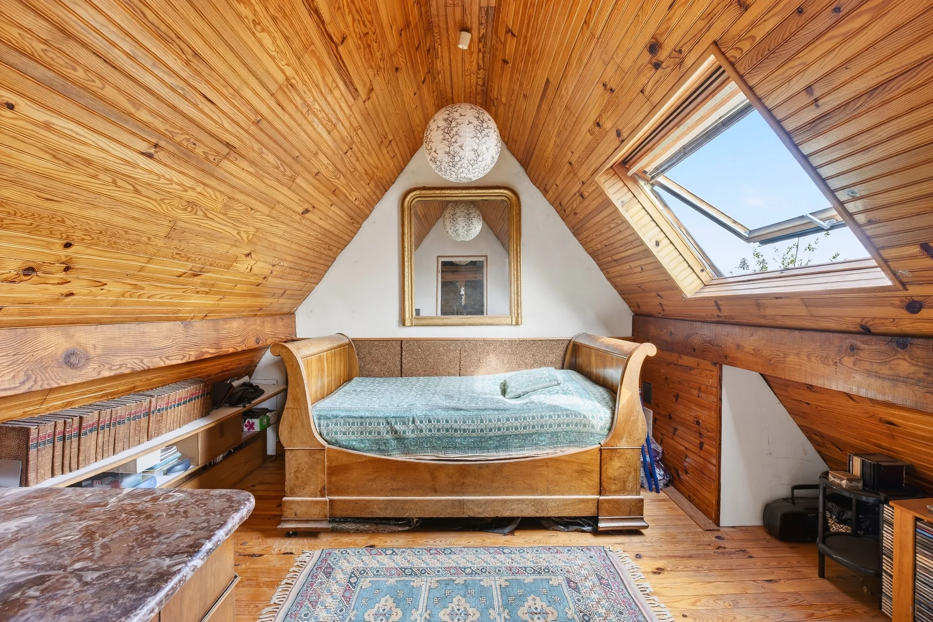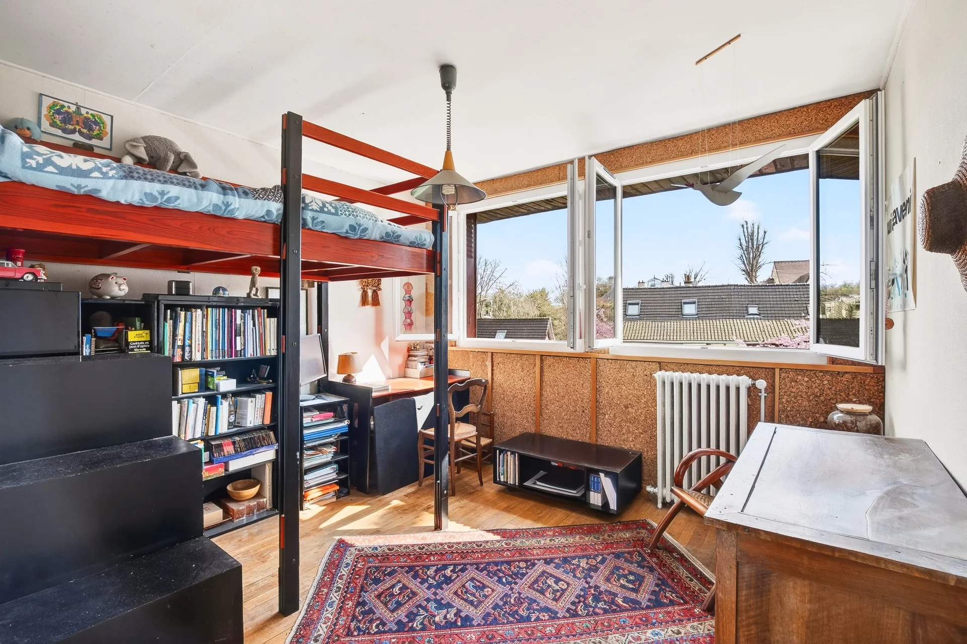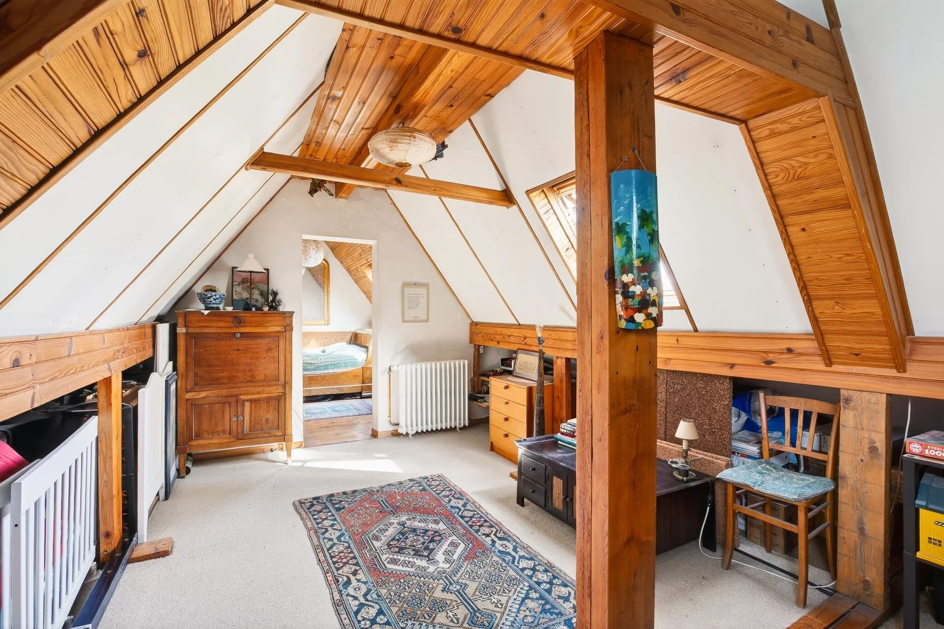 Les combles accueillent un espace de jeux ou de télétravail ainsi qu’une chambre, avec la possibilité d’y créer une salle d’eau.