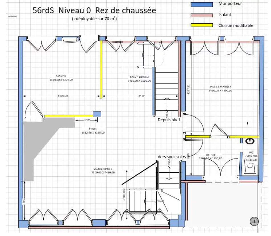 Étage : Rez-de-chaussée Exposition : Est, Ouest Plafond : 2.55m |