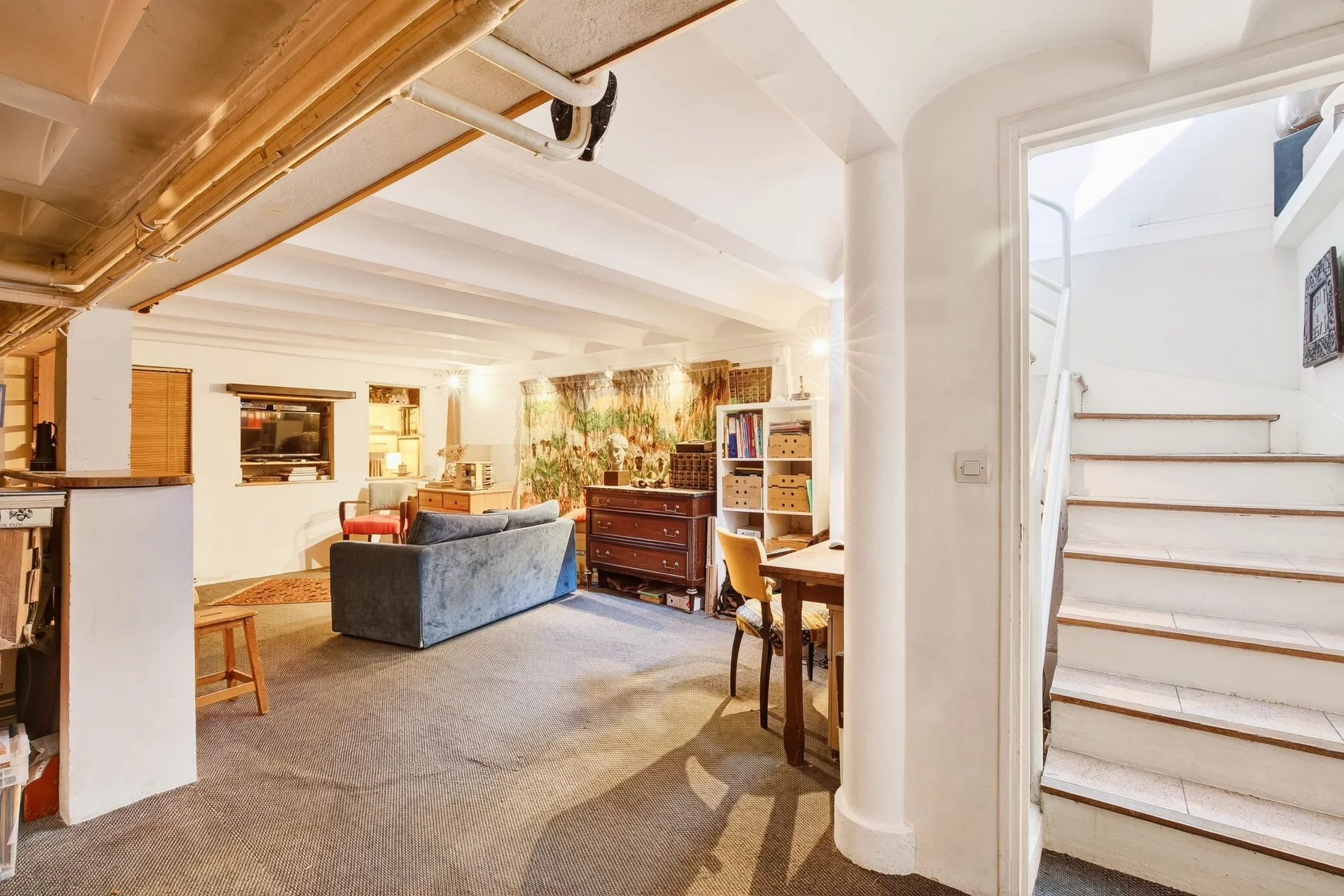 Le sous-sol propose un second salon, une chaufferie et une réserve.
