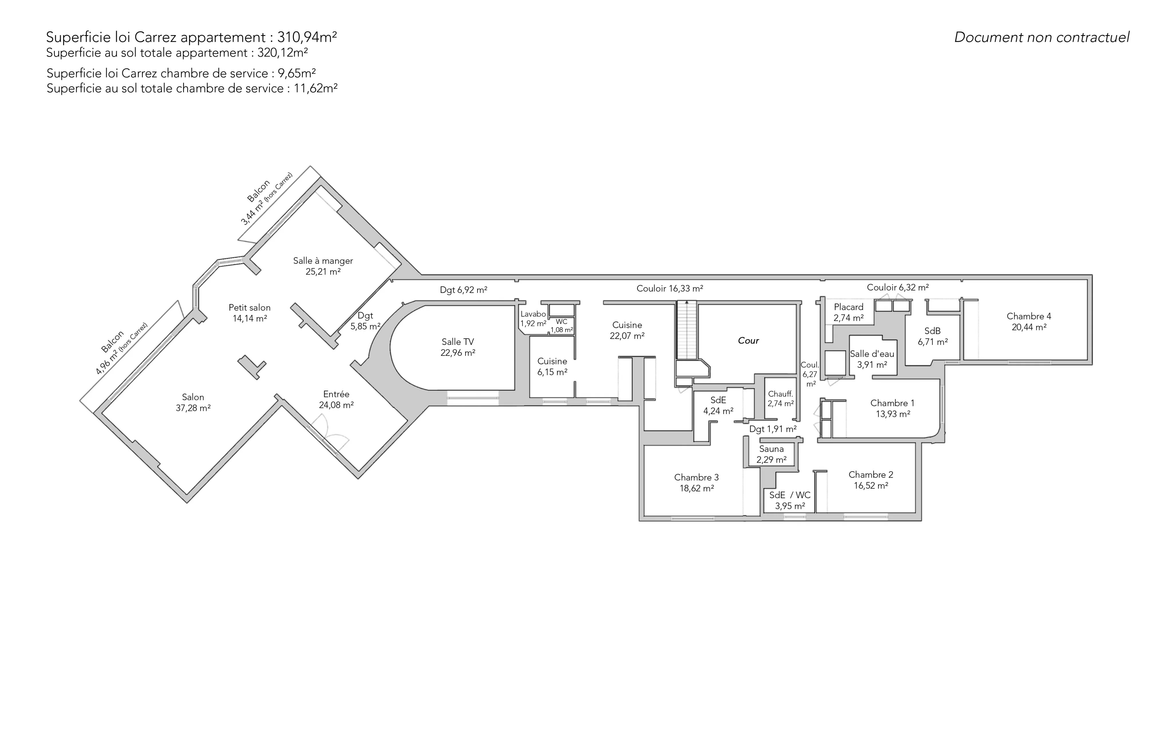 | 1x Couloir | 6.32 m² | Étage : 5ème |