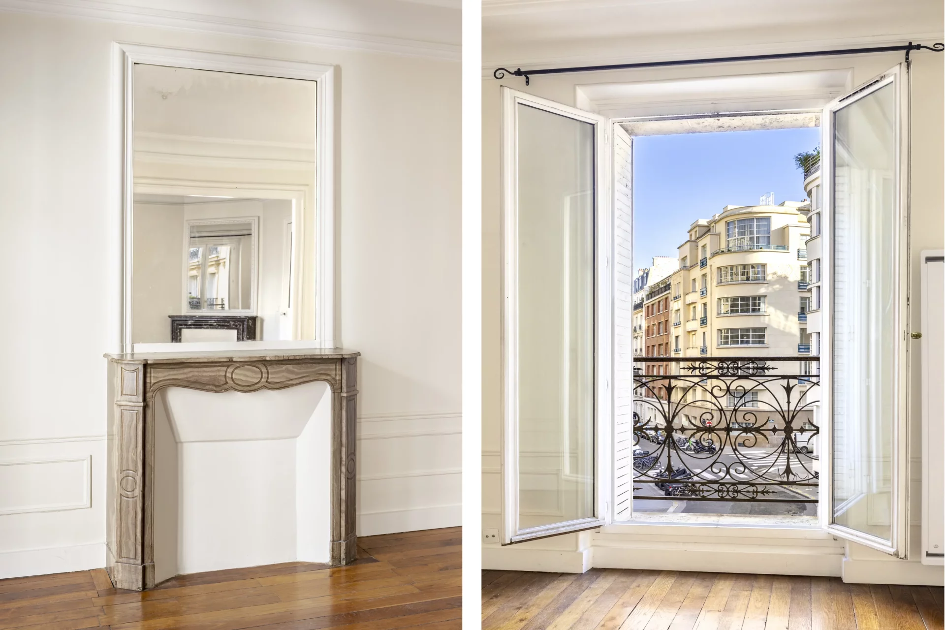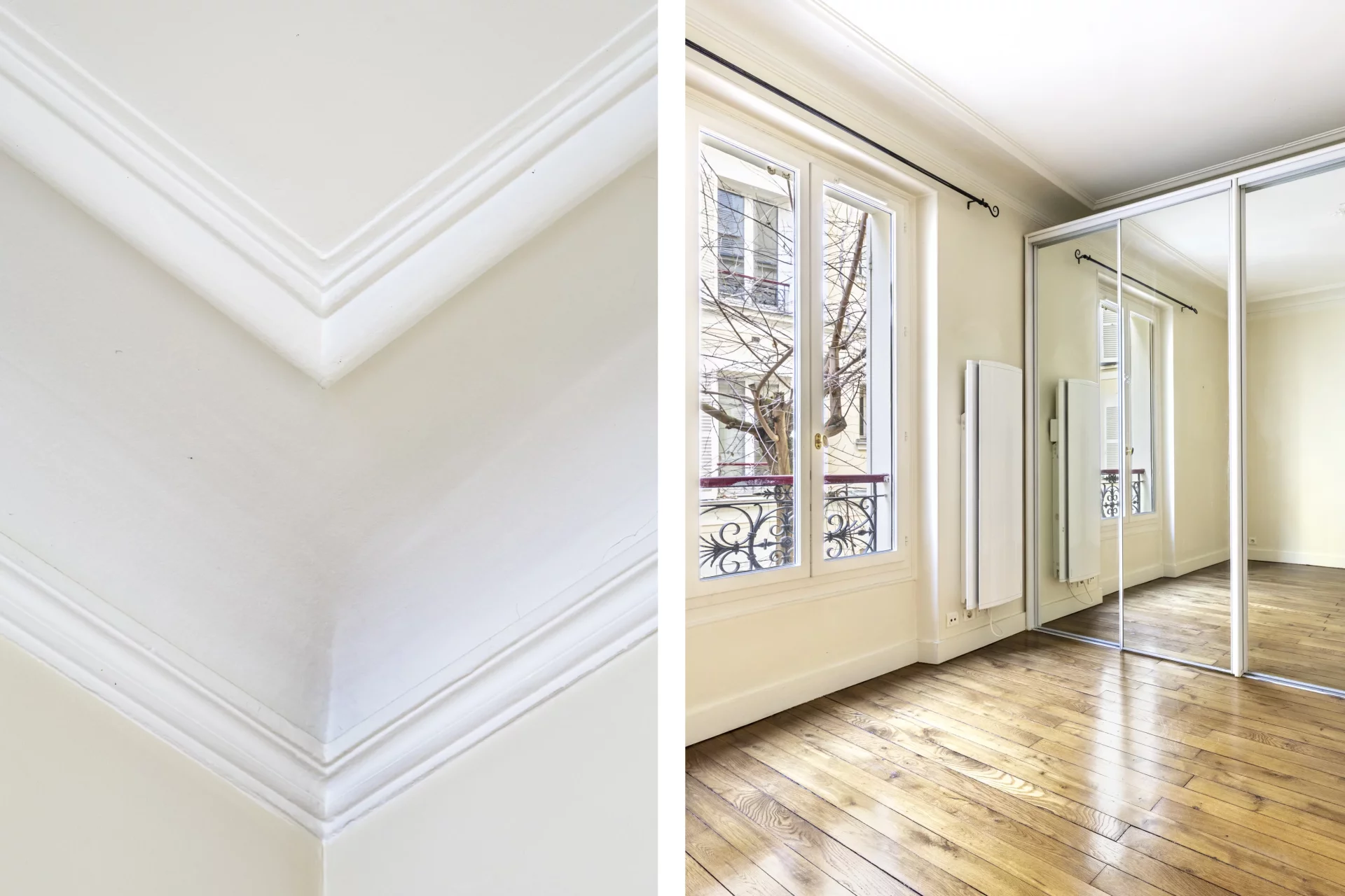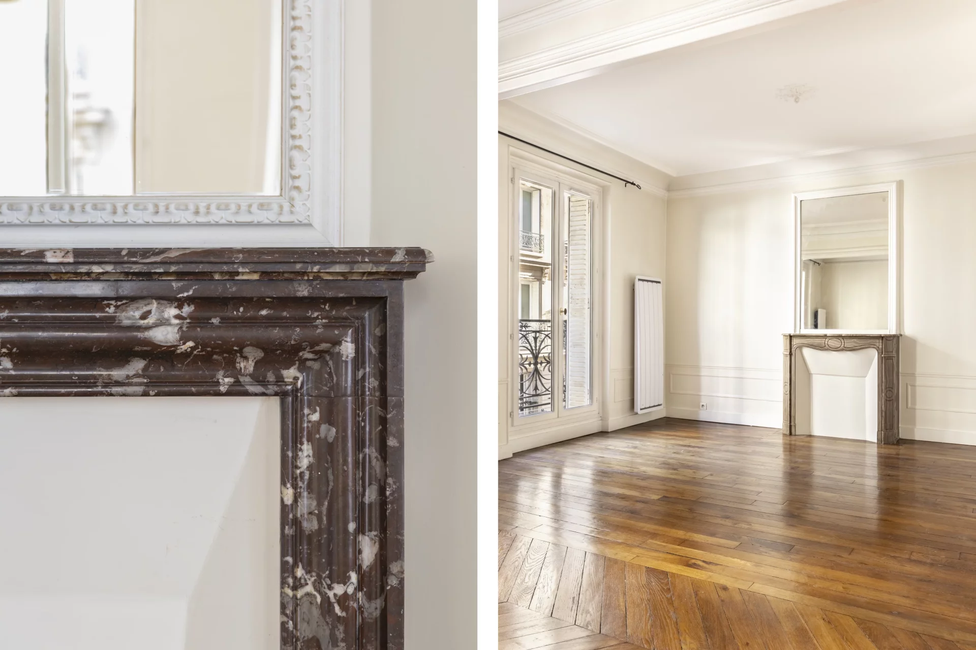 Cet appartement présente tout le charme de l'ancien : moulures, parquet en point de Hongrie, cheminées.