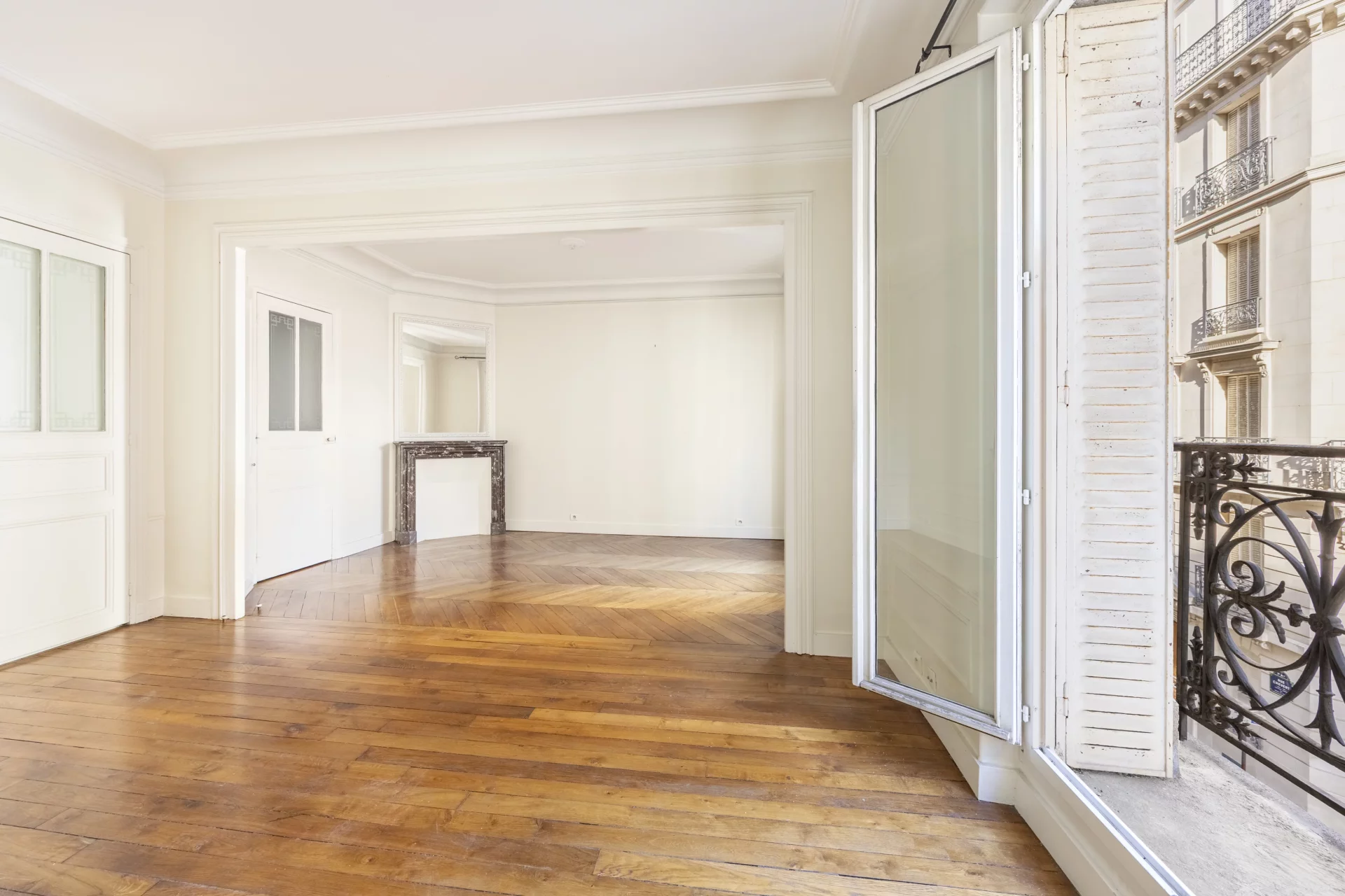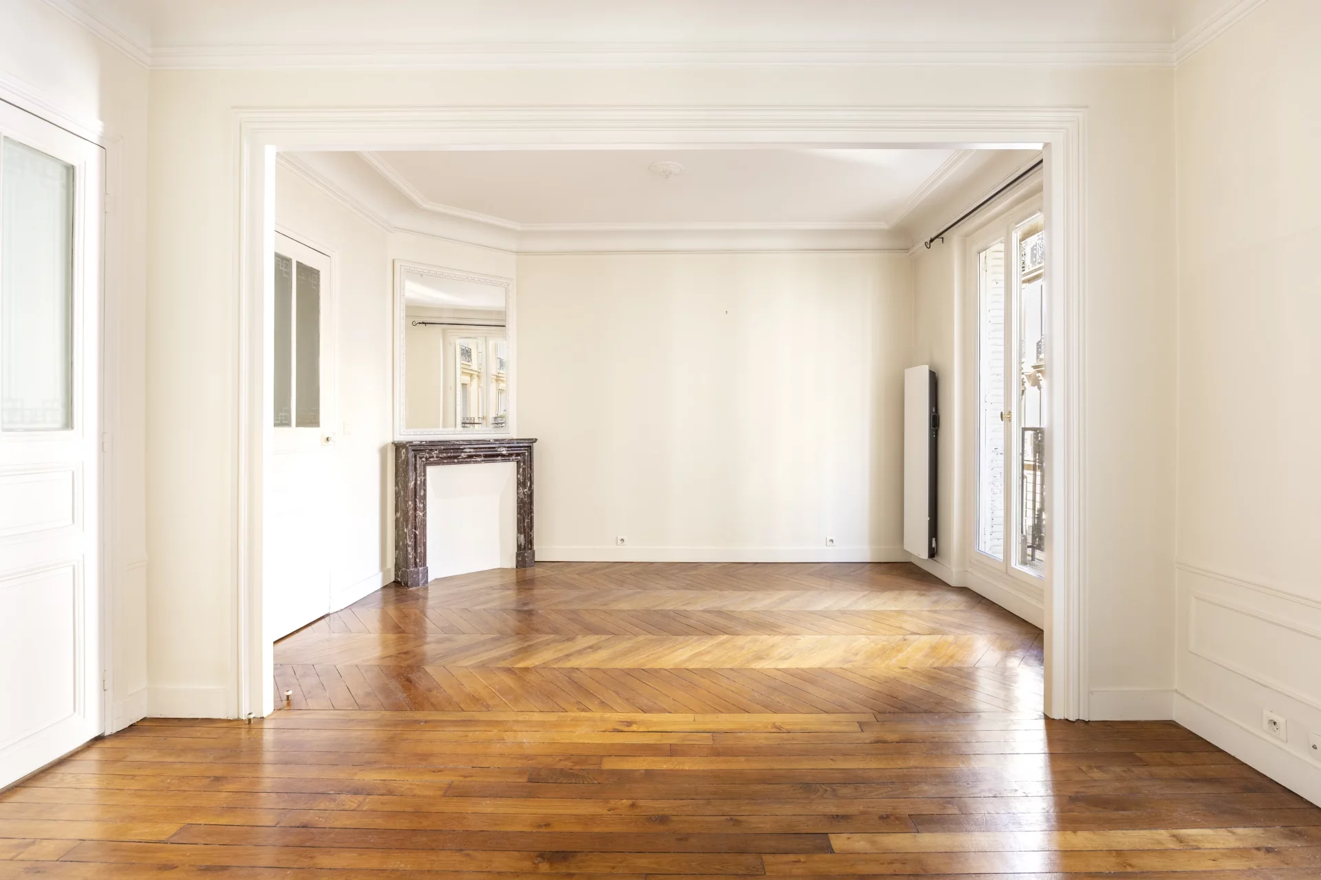 Appartement vide de 56,26m² Carrez, très lumineux, situé au deuxième étage par ascenseur d'un bel immeuble haussmannien.