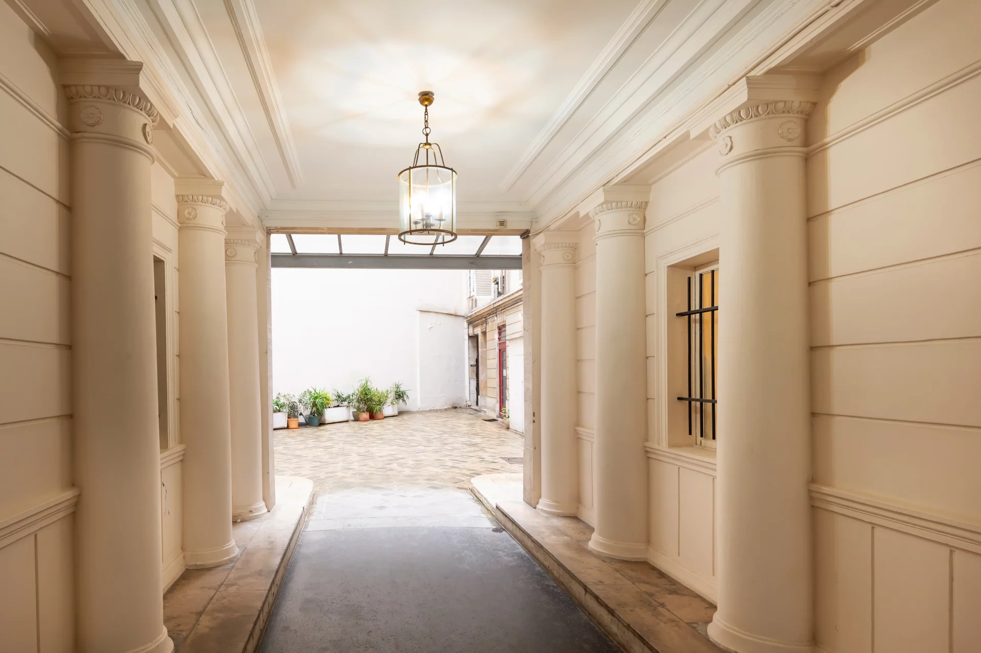 Au cinquième et dernier étage par ascenseur d'un élégant immeuble haussmannien en pierre de taille, ce lumineux appartement de 76,17 m² loi Carrez entièrement rénové vous offre un cadre de vie d'exception, au calme d'une jolie cour.