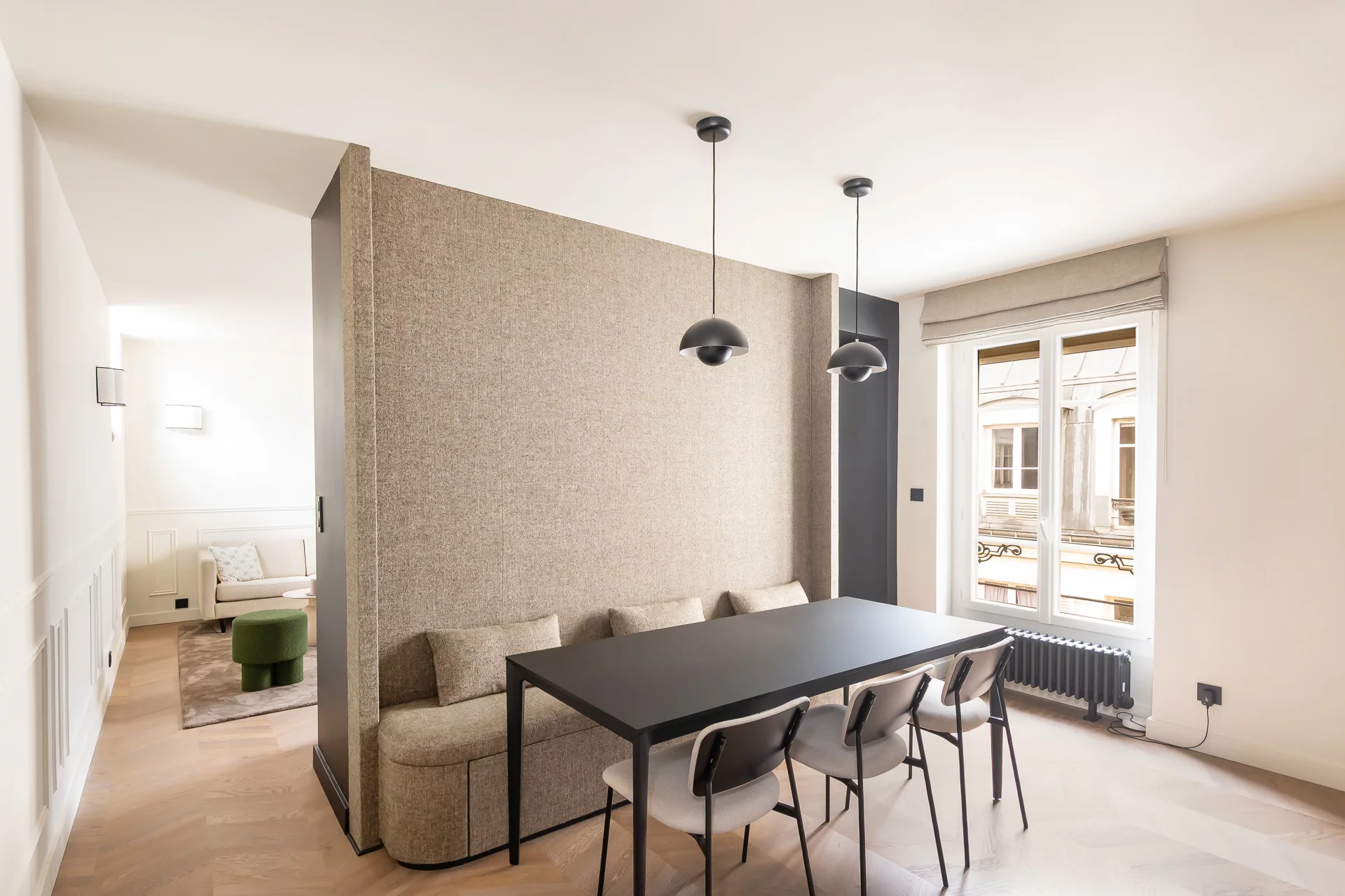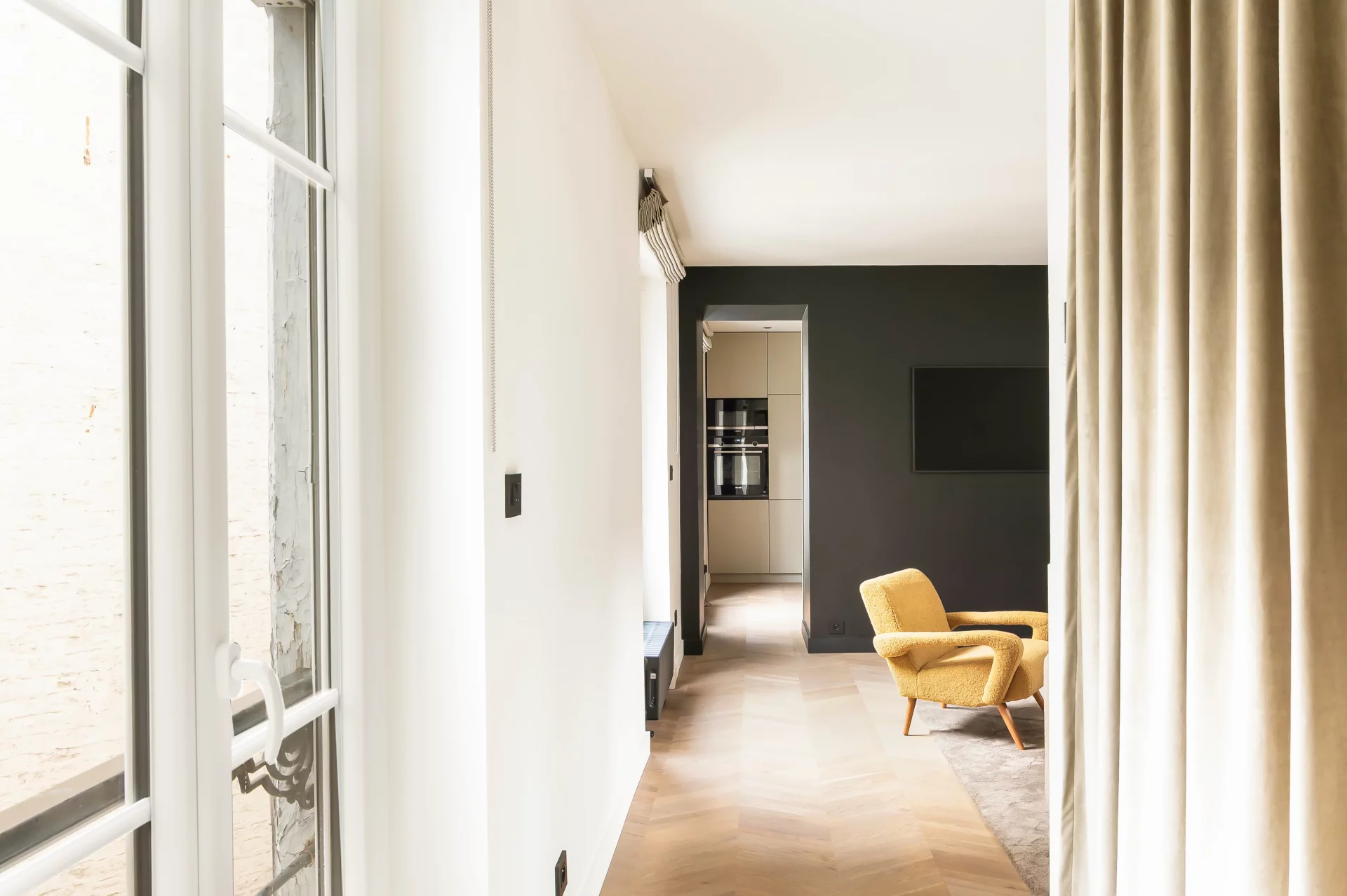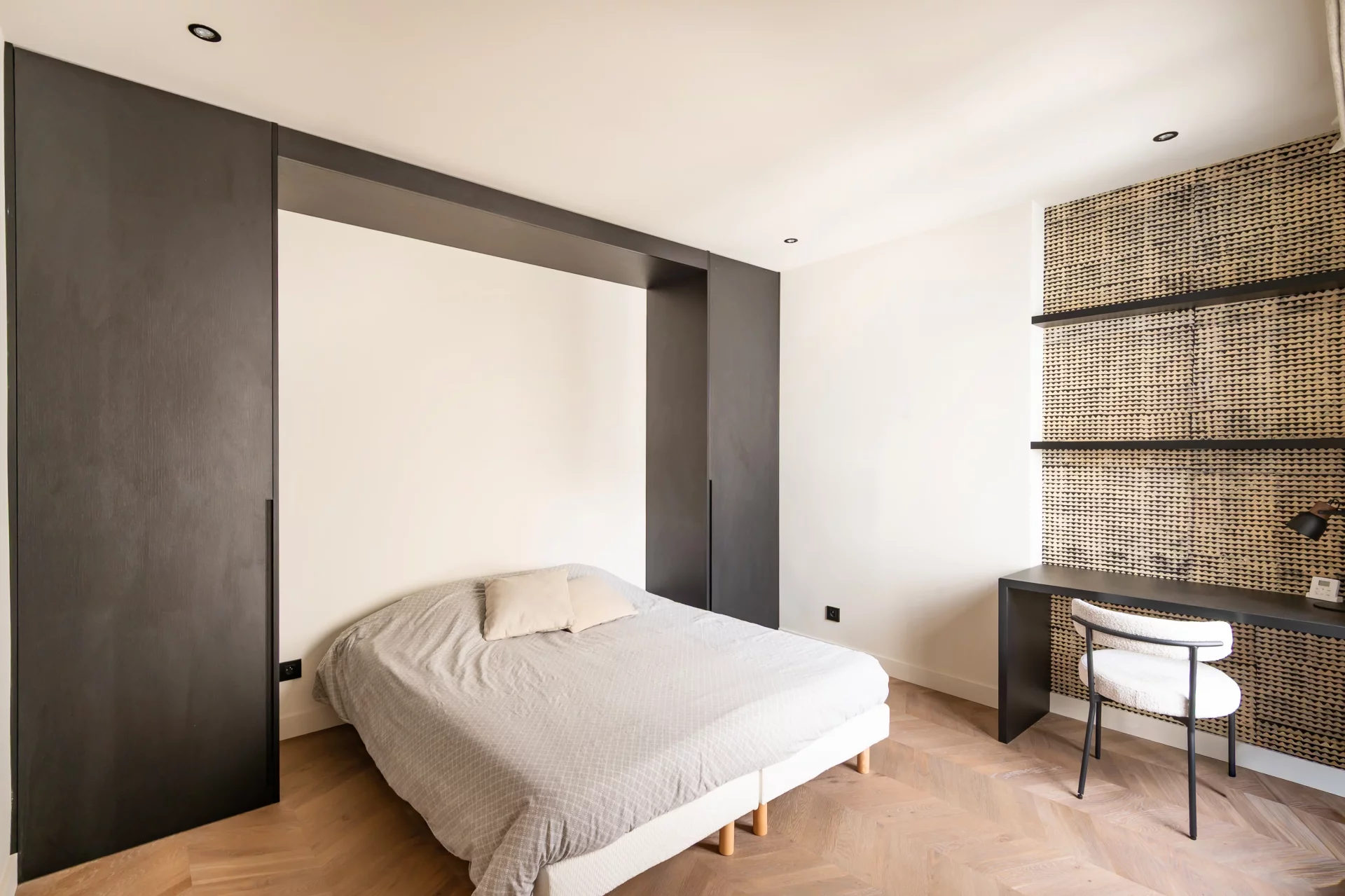 Entièrement repensé et restructuré en février 2024, il a été réalisé avec des matériaux haut de gamme soigneusement sélectionnés — parquet, menuiseries sur mesure, robinetterie de qualité — pour allier esthétisme et durabilité.