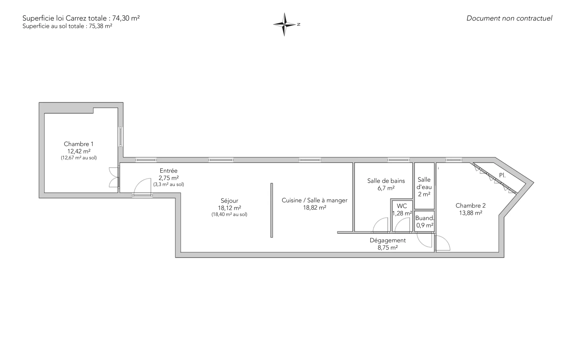 Le bien se compose d'un vaste séjour exposé plein ouest offrant de beaux volumes, d'une cuisine semi-ouverte avec coin repas entièrement aménagé sur mesure, de deux chambres dont une avec sa propre salle de douche, d'une salle de bain, de toilettes séparées et d'un placard buanderie. Une cave complète ce bien.