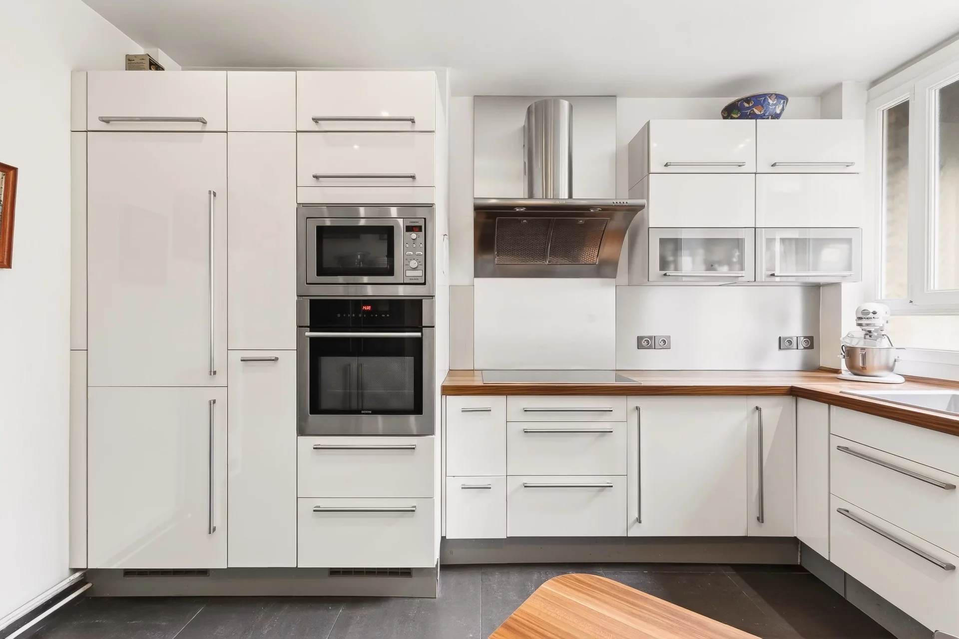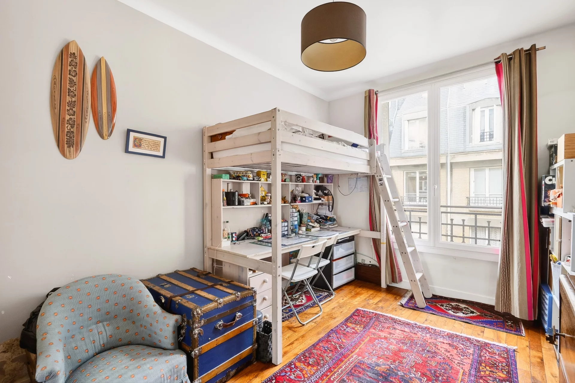 Situé dans un immeuble bourgeois d'inspiration Art déco construit en 1923 avec ascenseur, il a conservé tout le charme de l'époque avec parquet et cheminées.