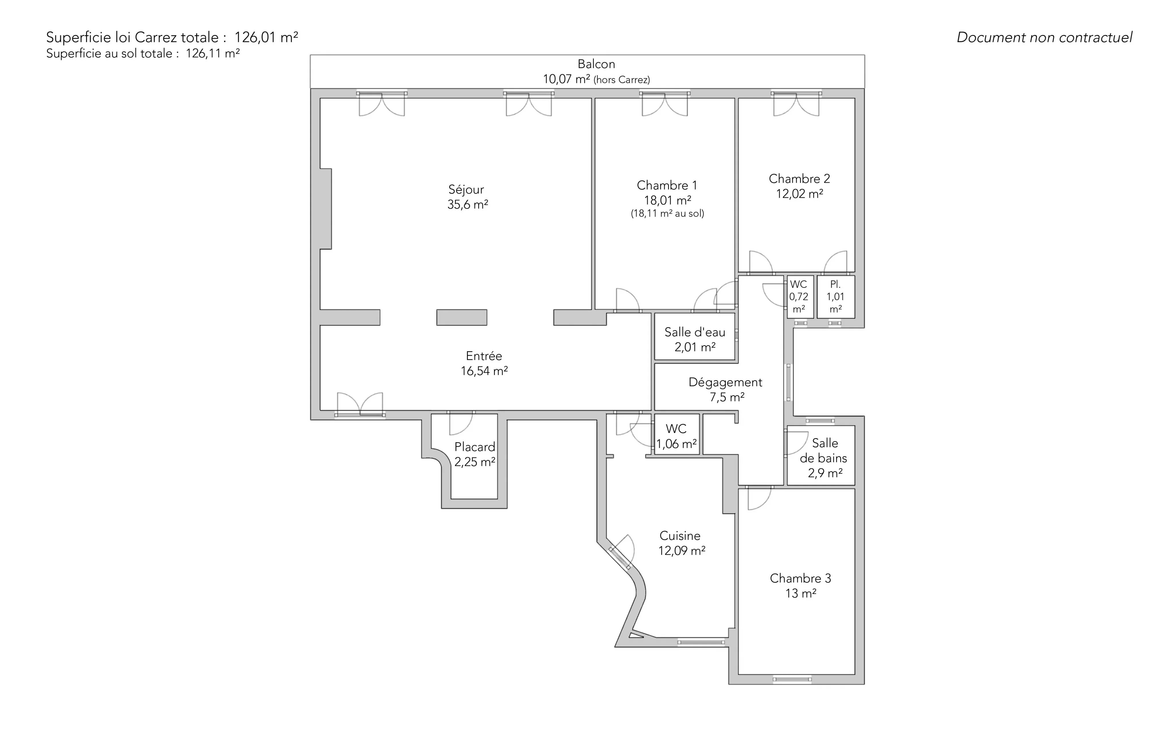 - Habitable : 126,01 m² Total : 126,11 m²