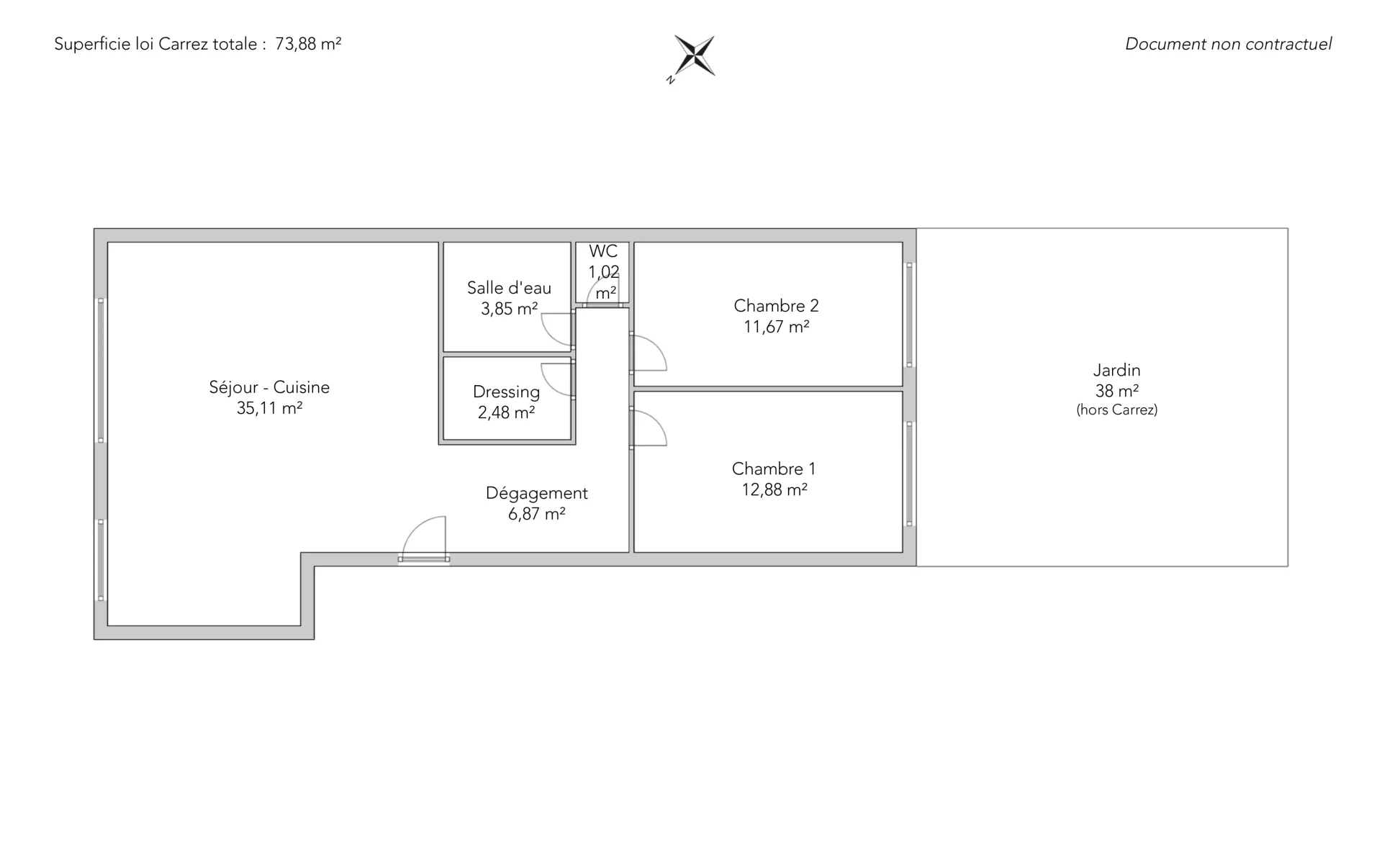 | 1x Jardin | 38 m² | |