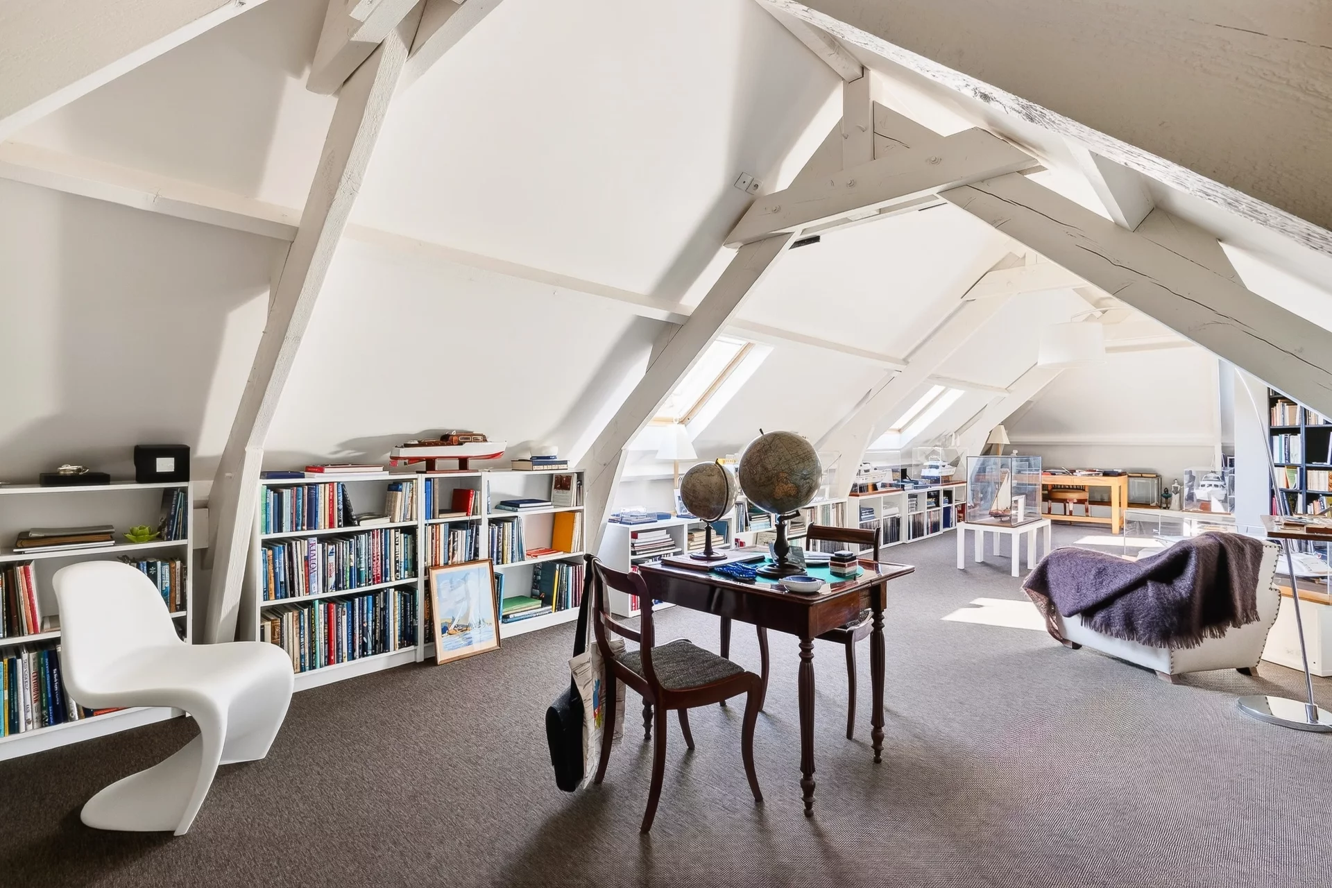 Les combles aménagés proposent une grande pièce modulable, idéale pour un bureau, une salle de jeux ou une chambre supplémentaire, avec la possibilité d’y créer facilement une salle de bains.