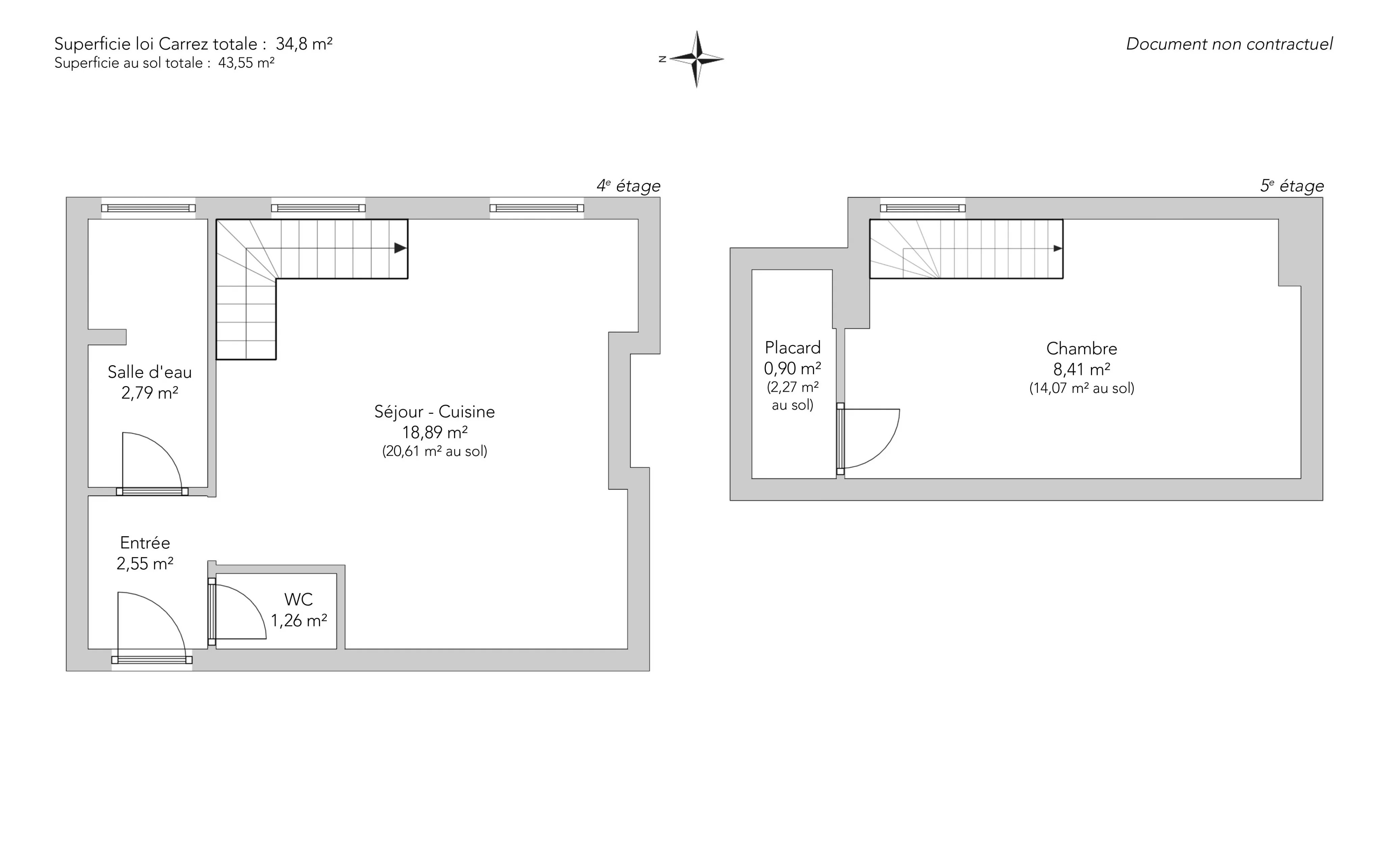 | 1x Salle de douche | 2.79 m² | Étage : 4ème |