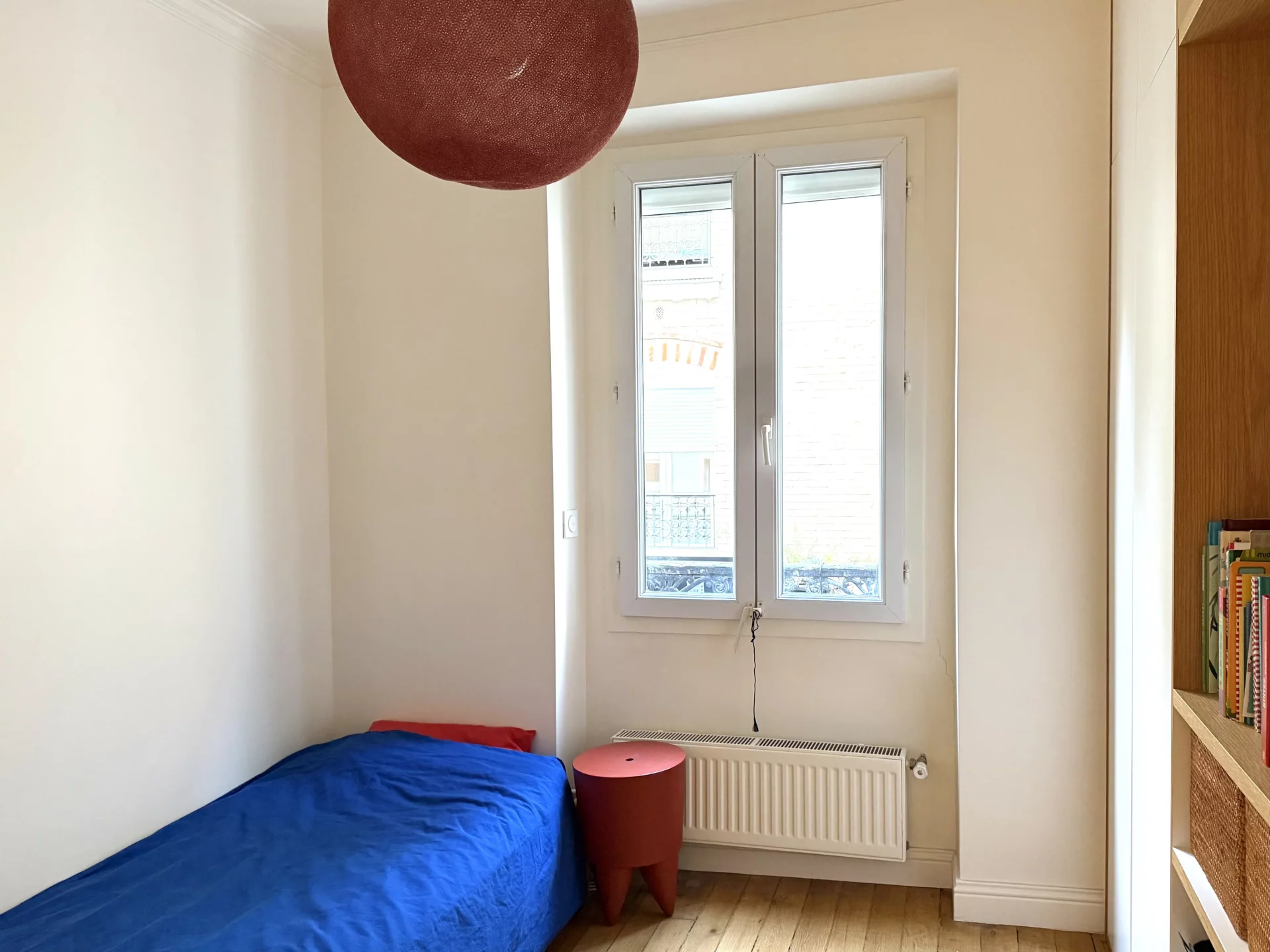 Il comprend une entrée, un très grand séjour lumineux avec trois fenêtres et une exposition sud-est, une cuisine aménagée et équipée, une première chambre donnant sur cour avec volet électrique, une seconde chambre pouvant faire office de chambre d’enfant, bureau ou dressing, ainsi qu’une salle de douche avec toilettes.