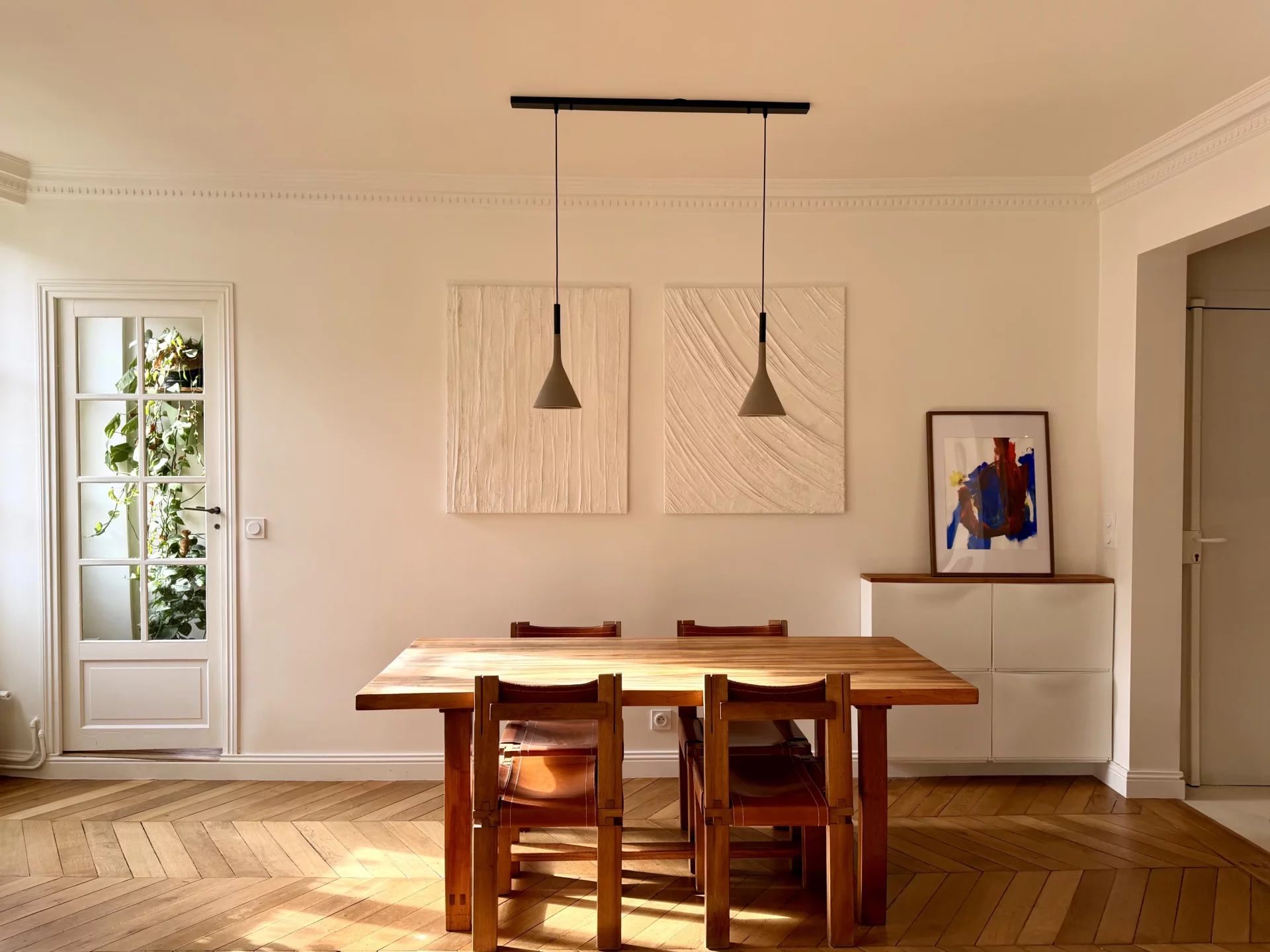 Très bel appartement entièrement rénové par architecte il y a trois ans, situé au quatrième étage par escalier d’un immeuble bien entretenu avec gardienne.