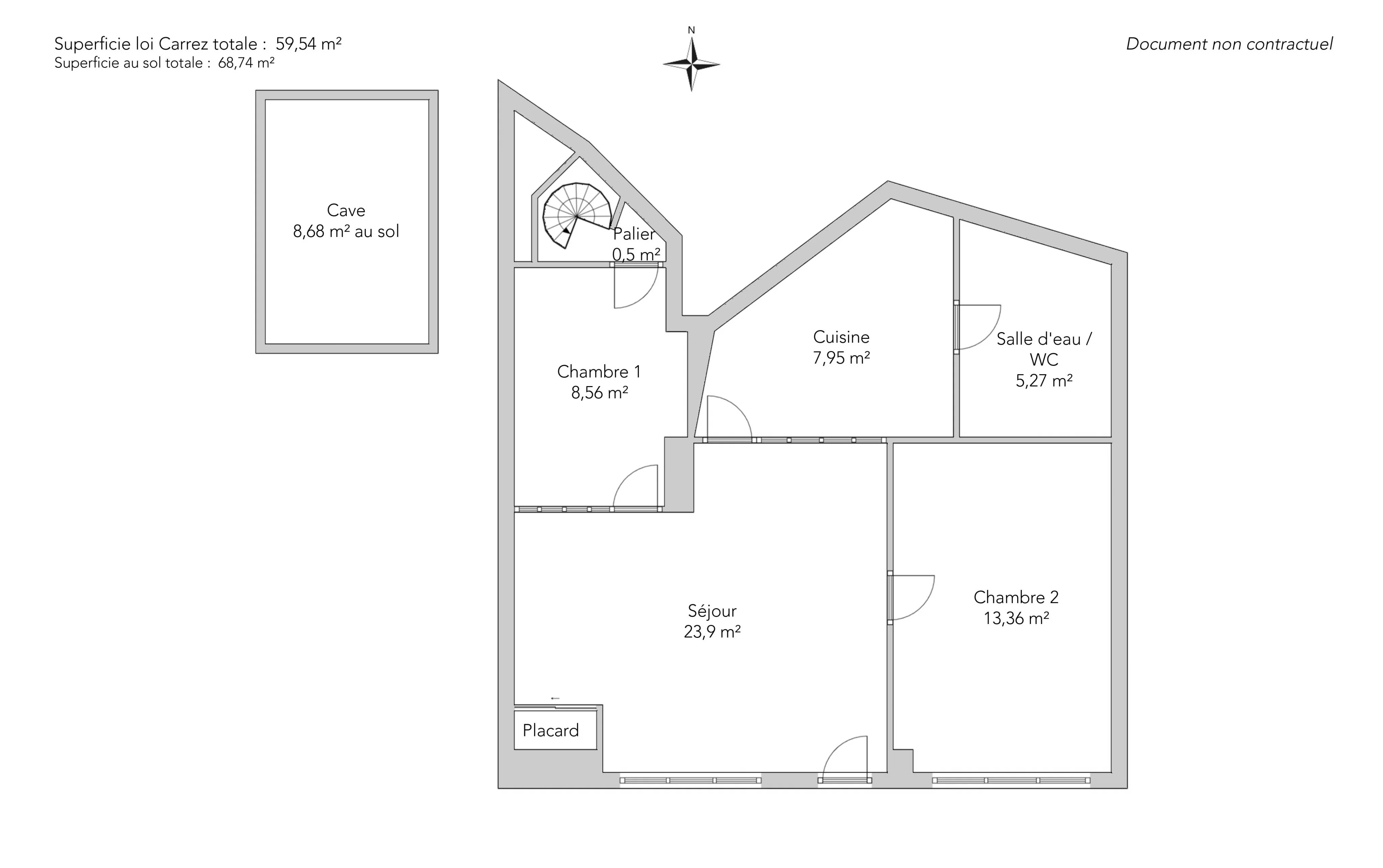 | 1x Cellier | 8.68 m² | Étage : Sous-sol |