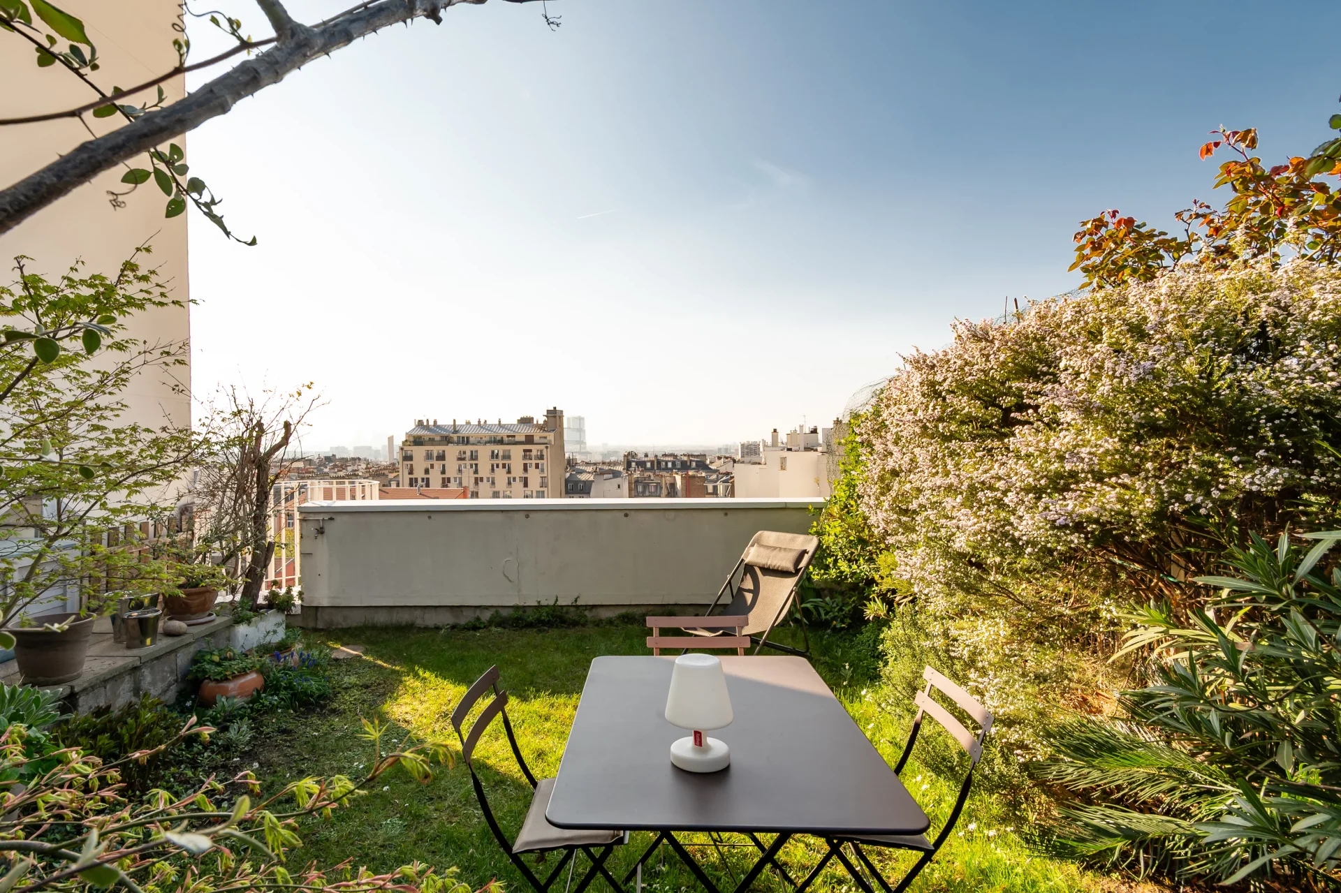 Depuis la première terrasse, un escalier en colimaçon permet d’accéder à un sublime jardin suspendu en jouissance exclusive. Ce véritable écrin de verdure bénéficie d’un ensoleillement constant et d’une vue dégagée sur l’Ouest parisien.