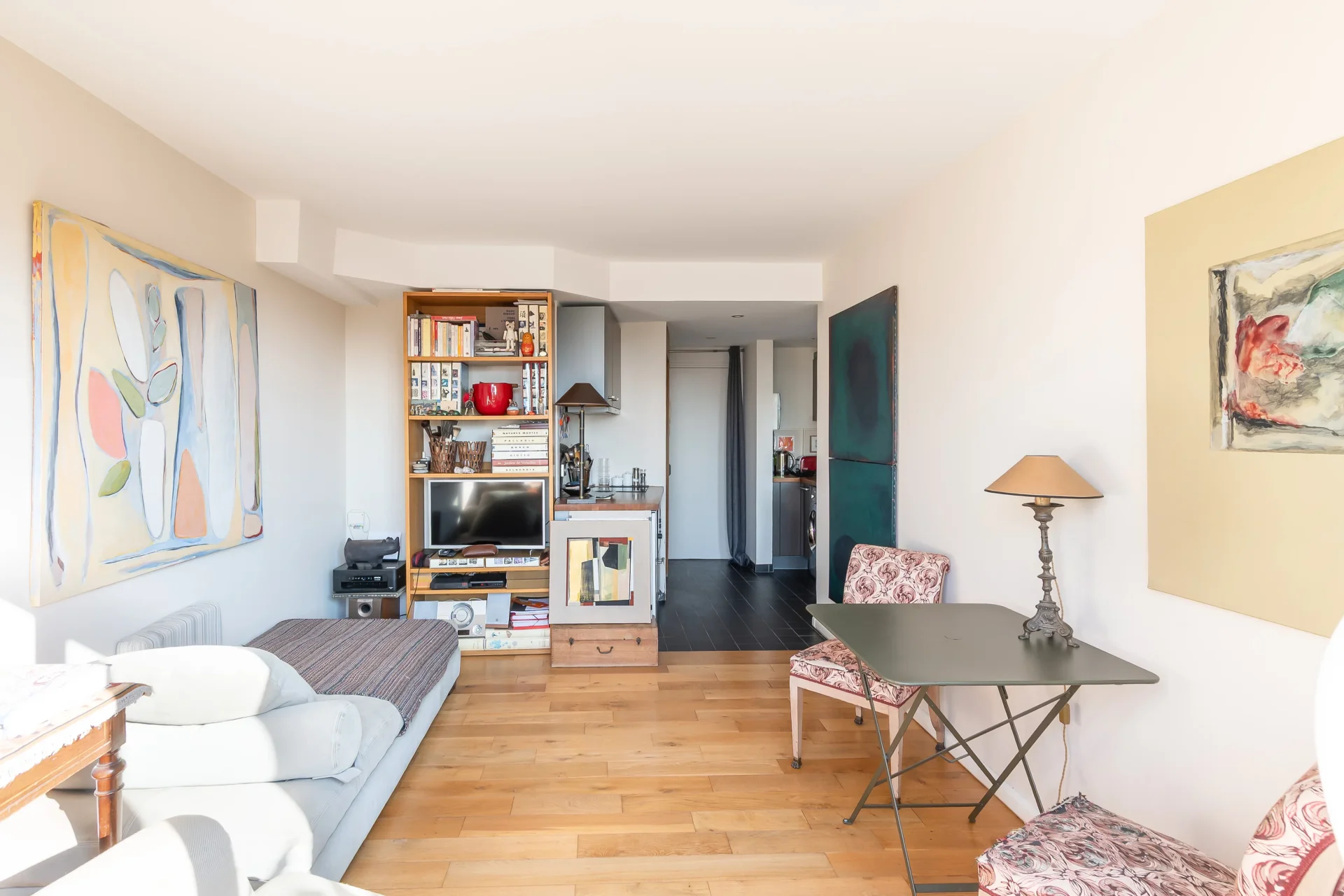 Comme une maison perchée au-dessus des toits de Paris, ce charmant appartement de 34.21m² carrez au sein d'une résidence avec piscine offre des vues époustouflantes et un toit terrasse de 32m² ainsi qu'une terrasse de 11.78m² de plein pied.