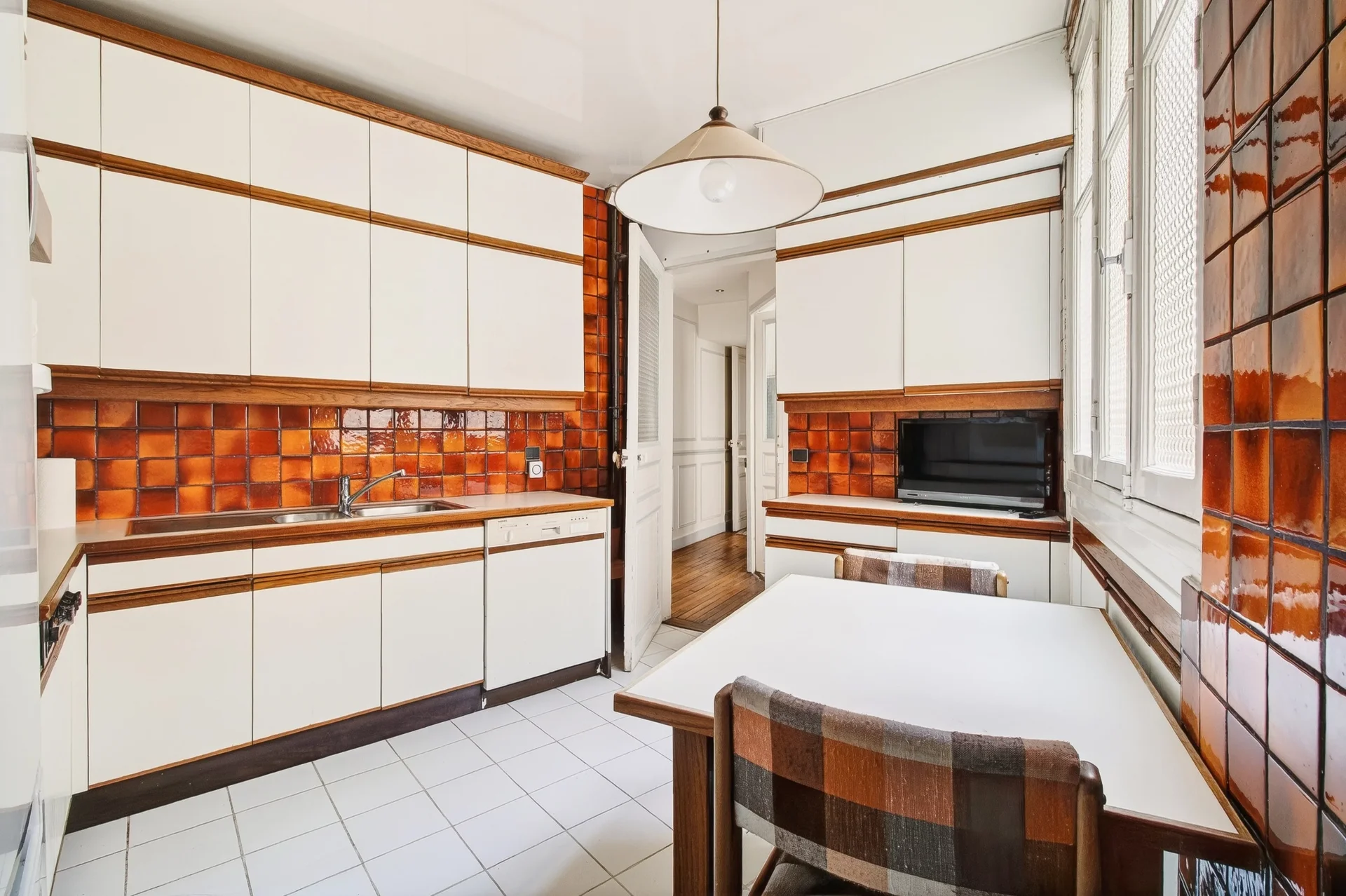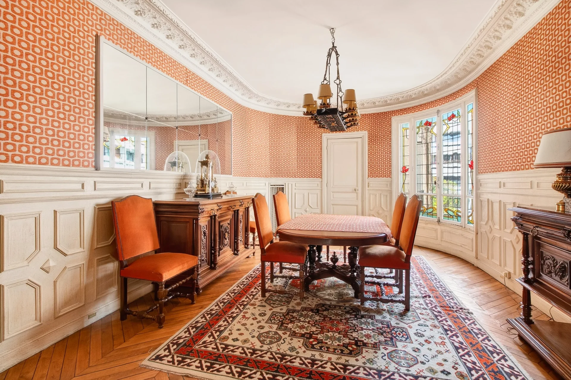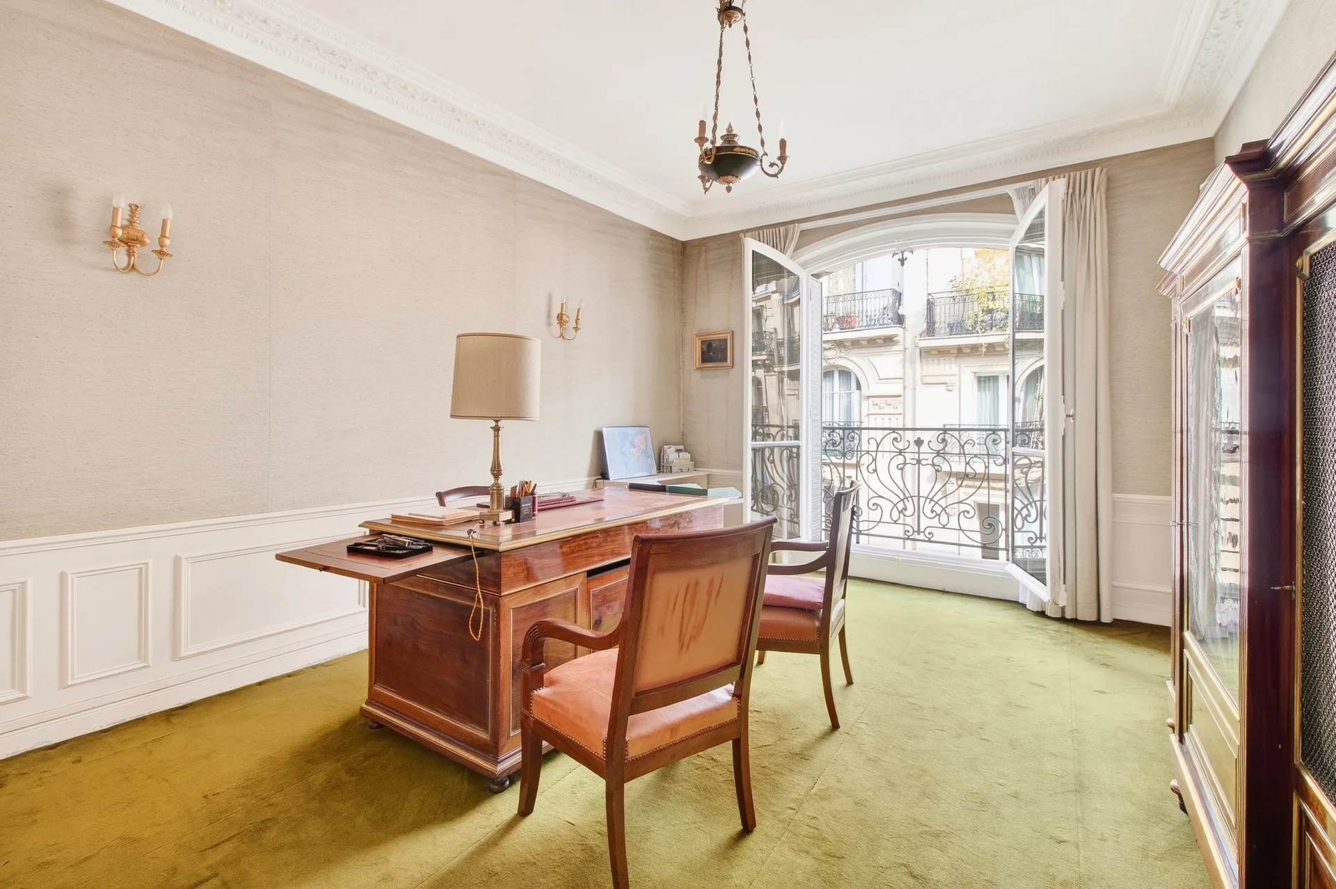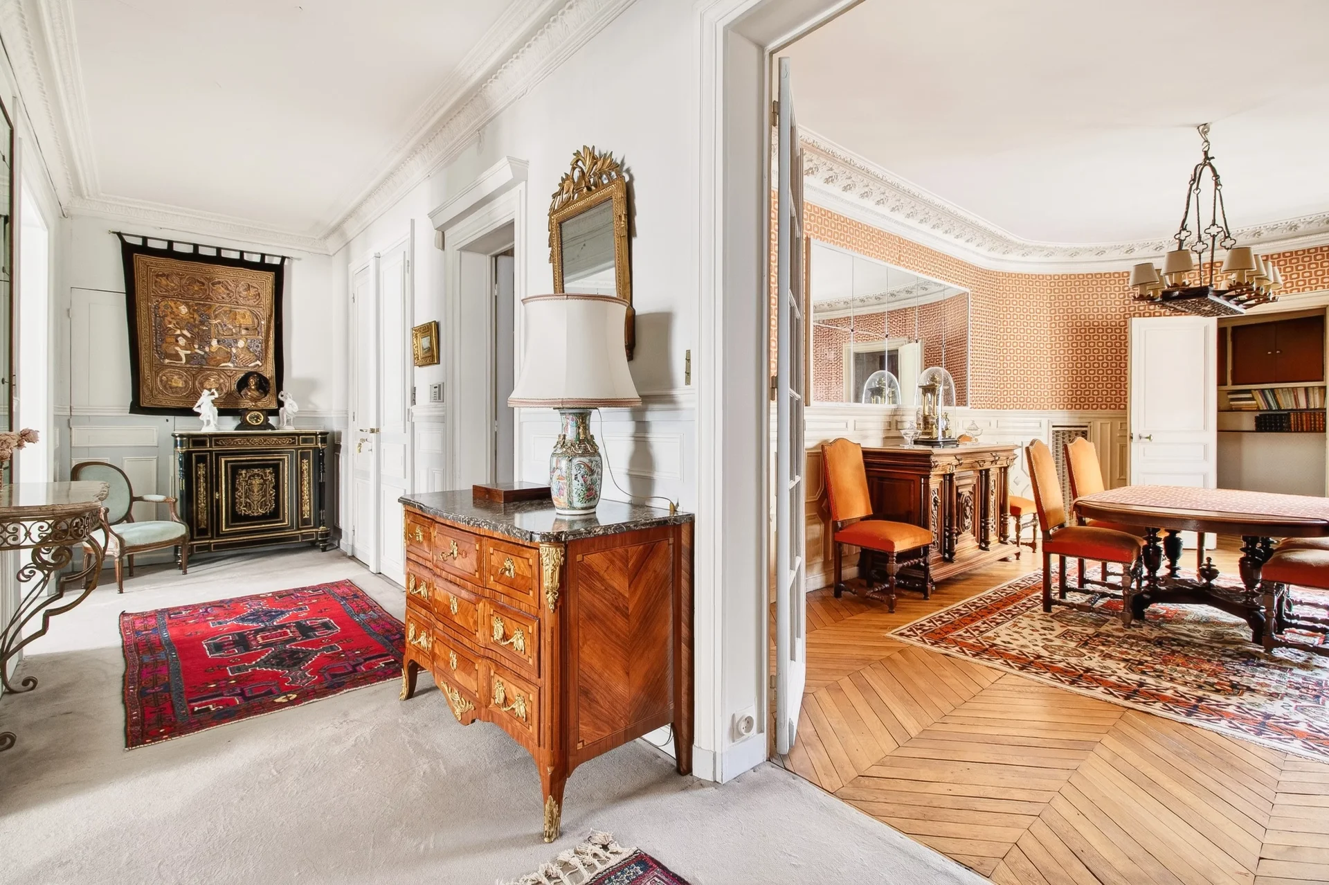 Traversant, il bénéficie de beaux volumes, de moulures délicates, d'une cheminée et d’un parquet en point de Hongrie.