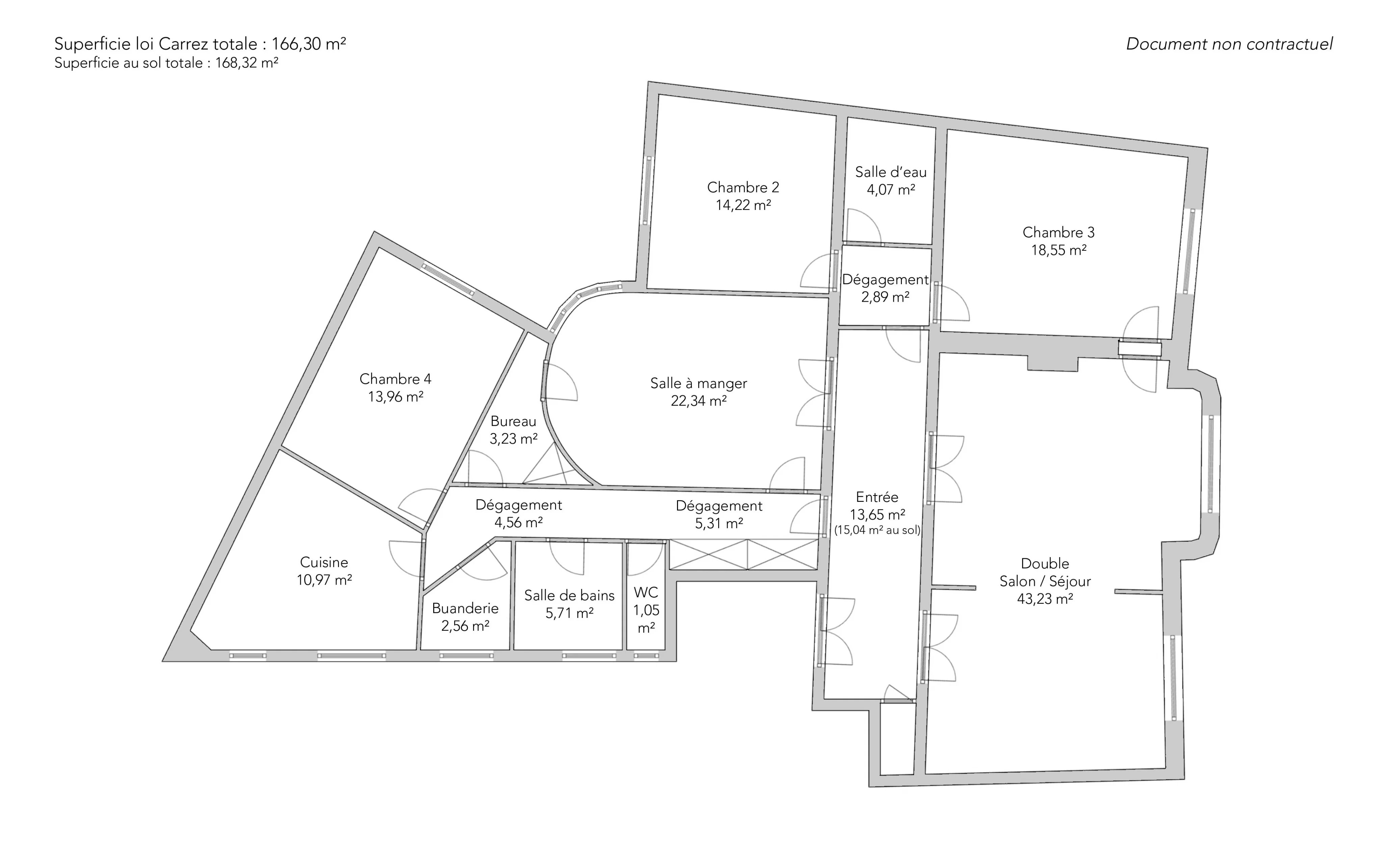 - Habitable : 166,30 m² Total : 168,32 m²