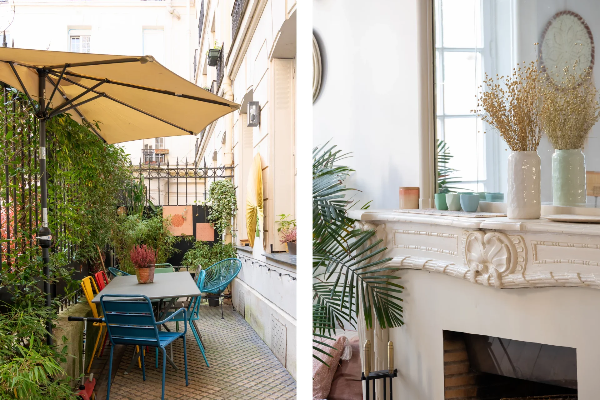Ce bien lumineux ouvre sur une terrasse de 15m² qui offre une jolie vue sur le jardin d'un hôtel particulier.