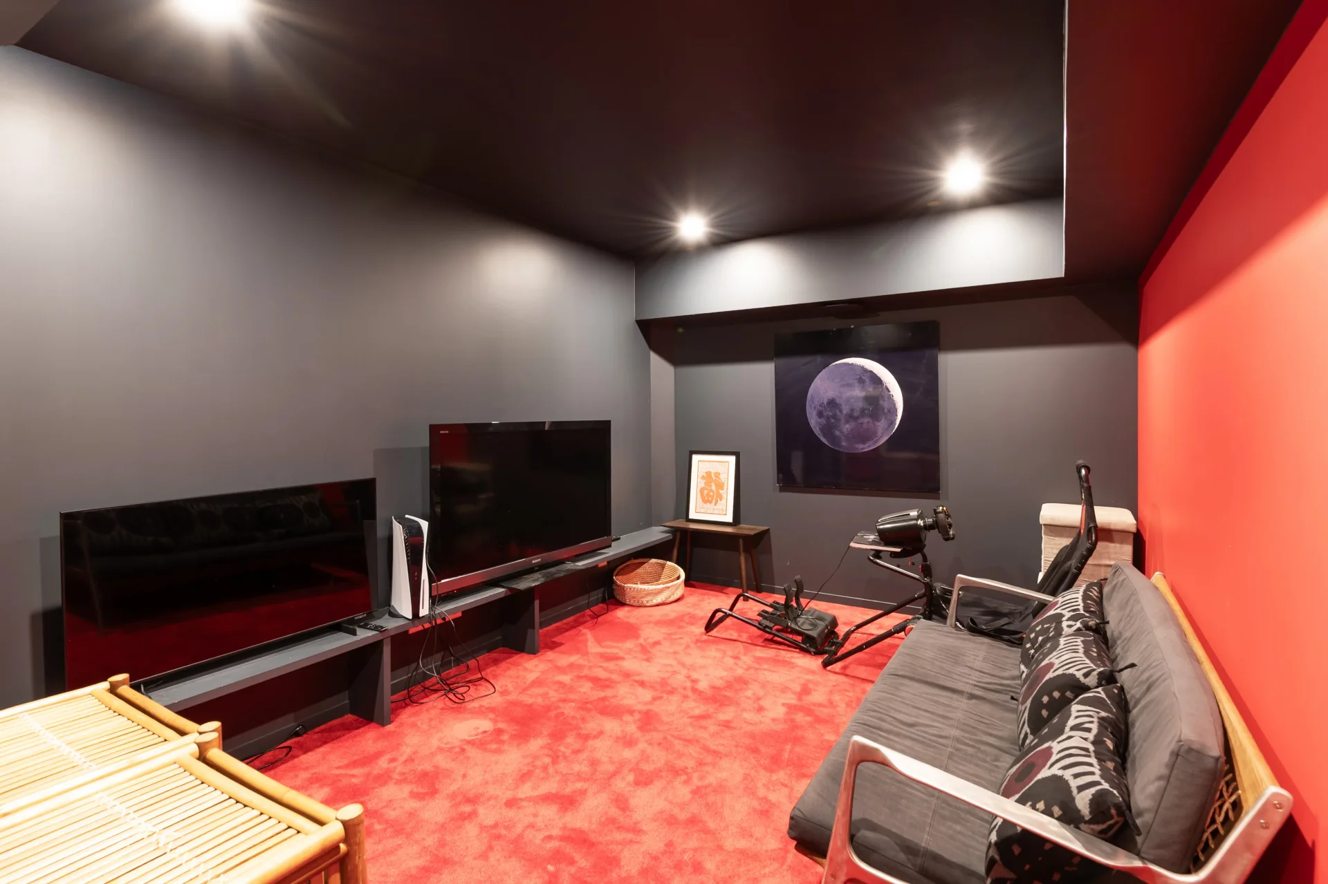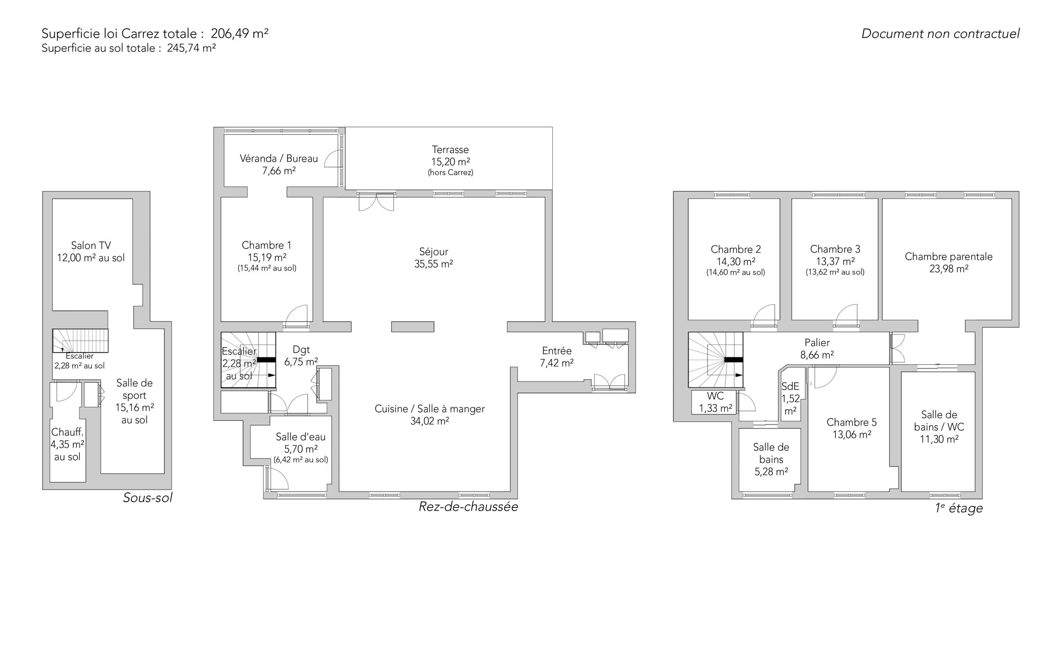 Le sous-sol (non compris dans le métrage Carrez) a également été aménagé et comprend une salle de sport ainsi qu'un salon TV.
