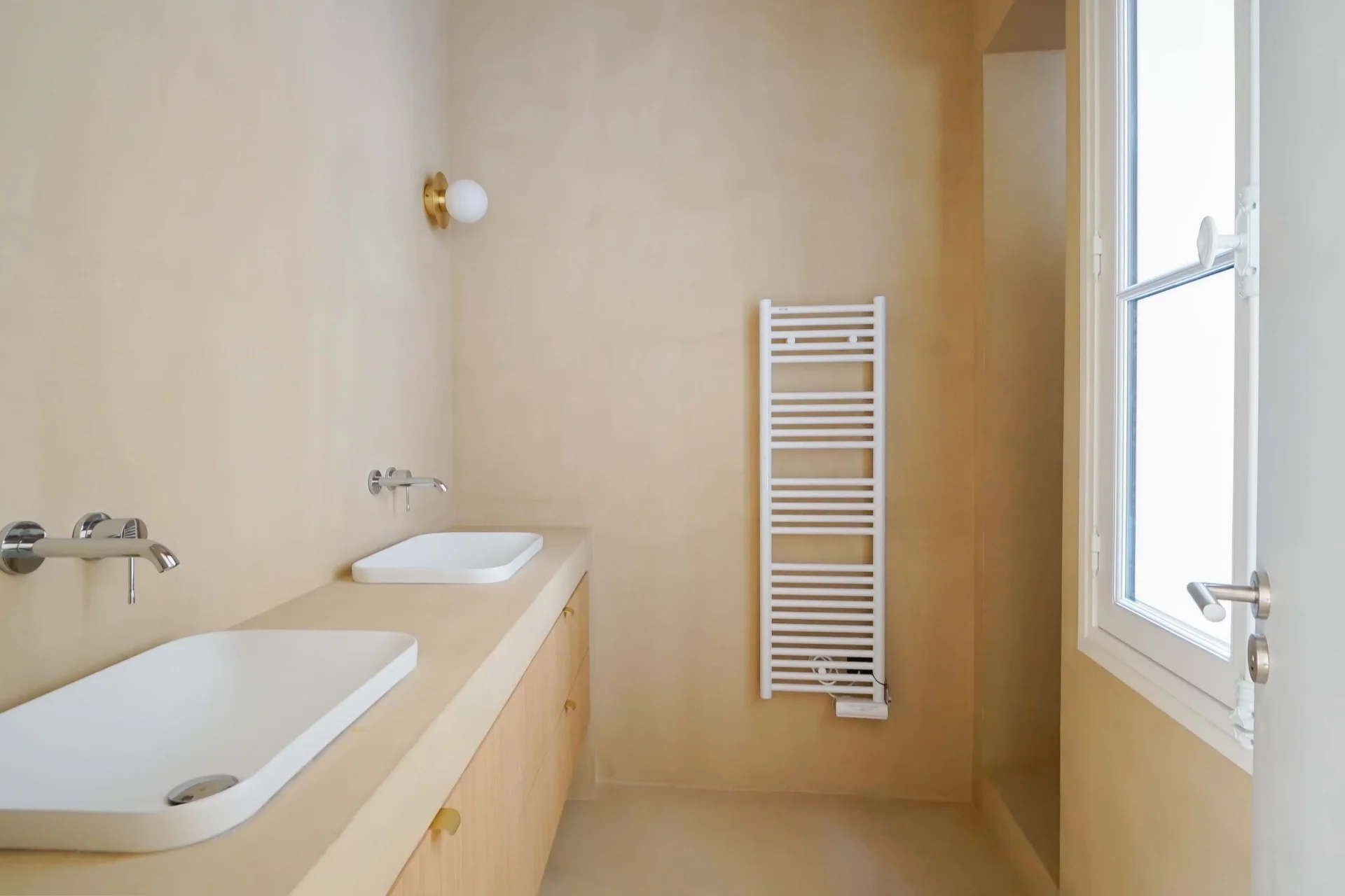 Les deux autres chambres de 11 et 14m² disposent chacune de leur propre salle d'eau. Toutes les salles de douche ont été refaites en béton ciré.