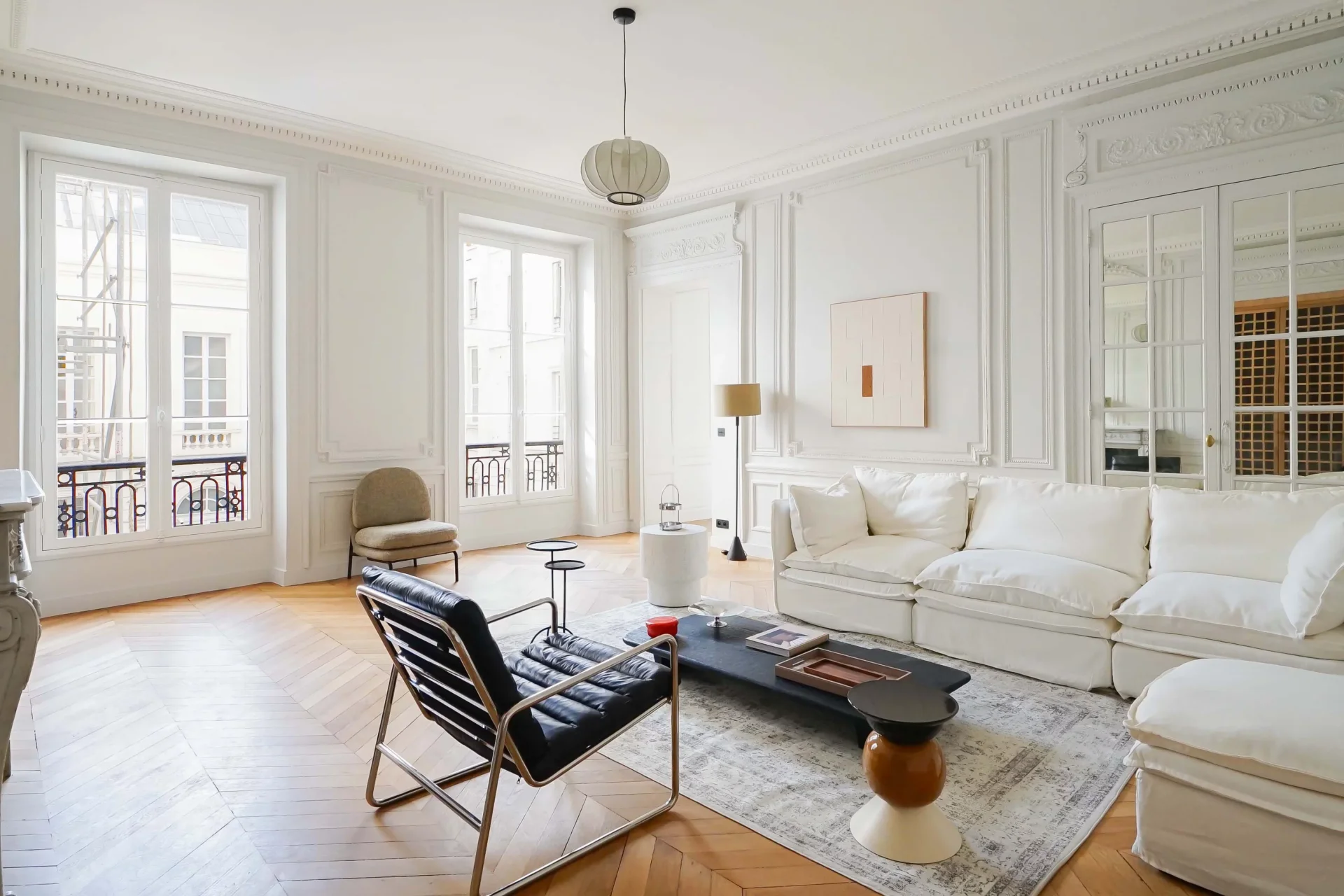Situé en plein cœur du IXe arrondissement, au deuxième étage avec ascenseur d'un immeuble haussmannien avec gardienne à demeure, cet appartement de 176,44 m² a été entièrement rénové par architecte.