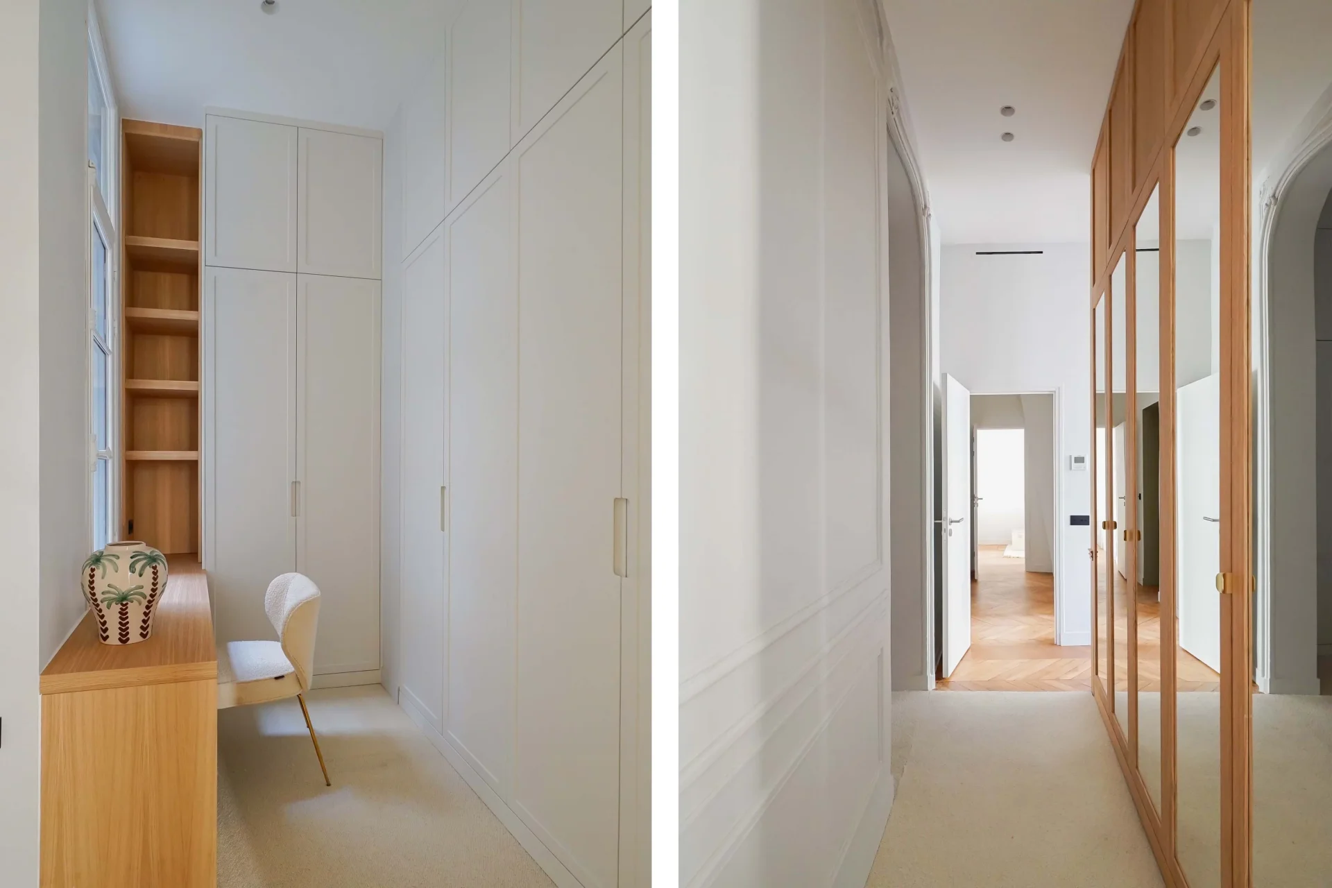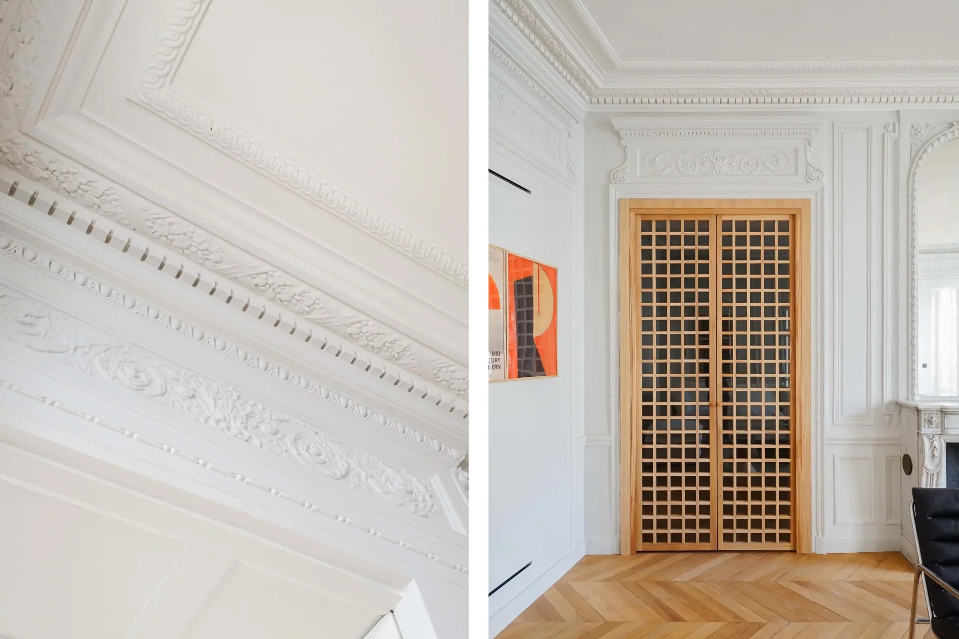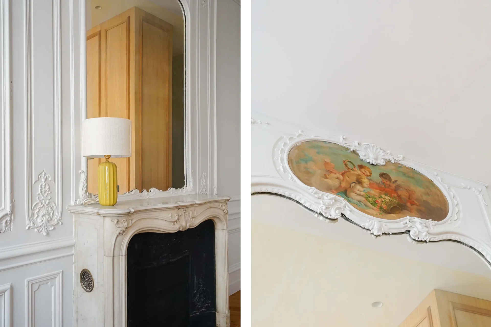 Cet appartement familial et de réception dispose de prestations haut de gamme, tout en préservant le cachet de l'ancien : parquet massif, moulures travaillées et cheminées décoratives.