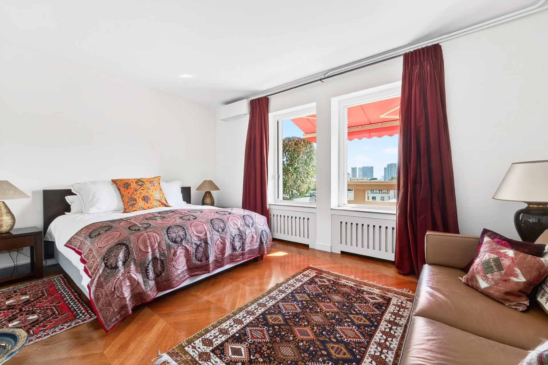 Une place de parking dans l’immeuble, une chambre de service au rez-de-chaussée ainsi qu'une cave complètent ce bien exceptionnel apprécié pour sa luminosité, ses volumes et ses vues imprenables.