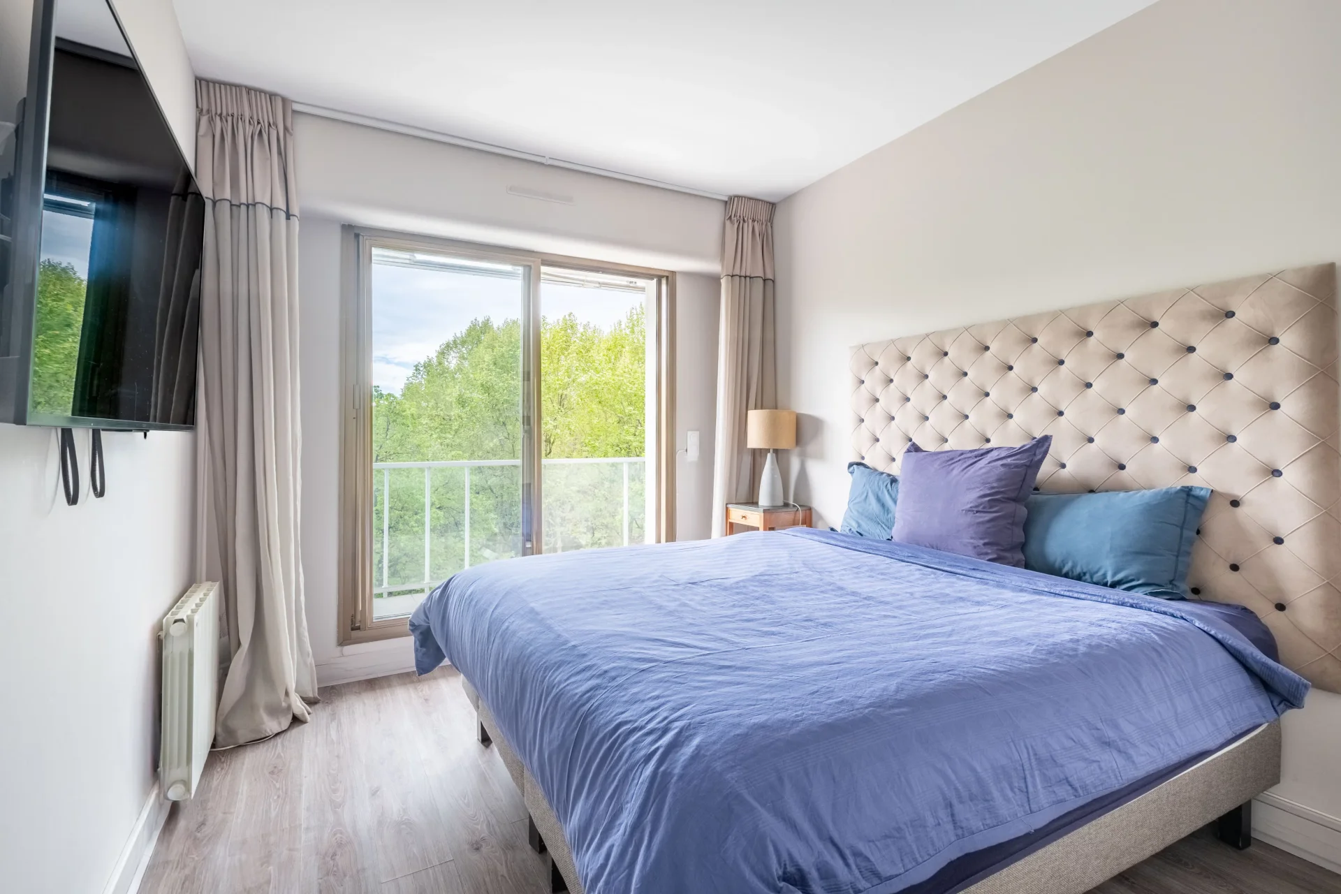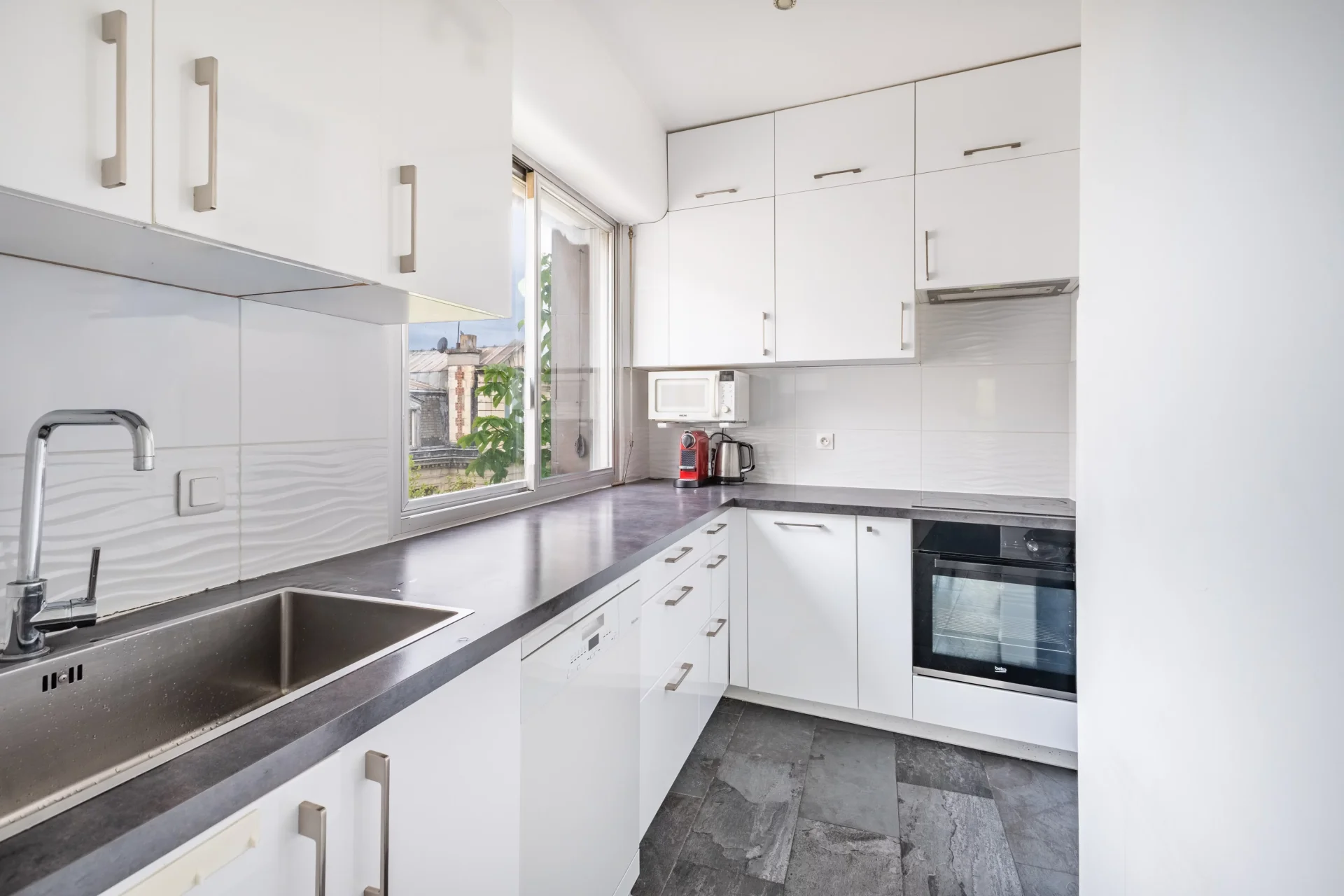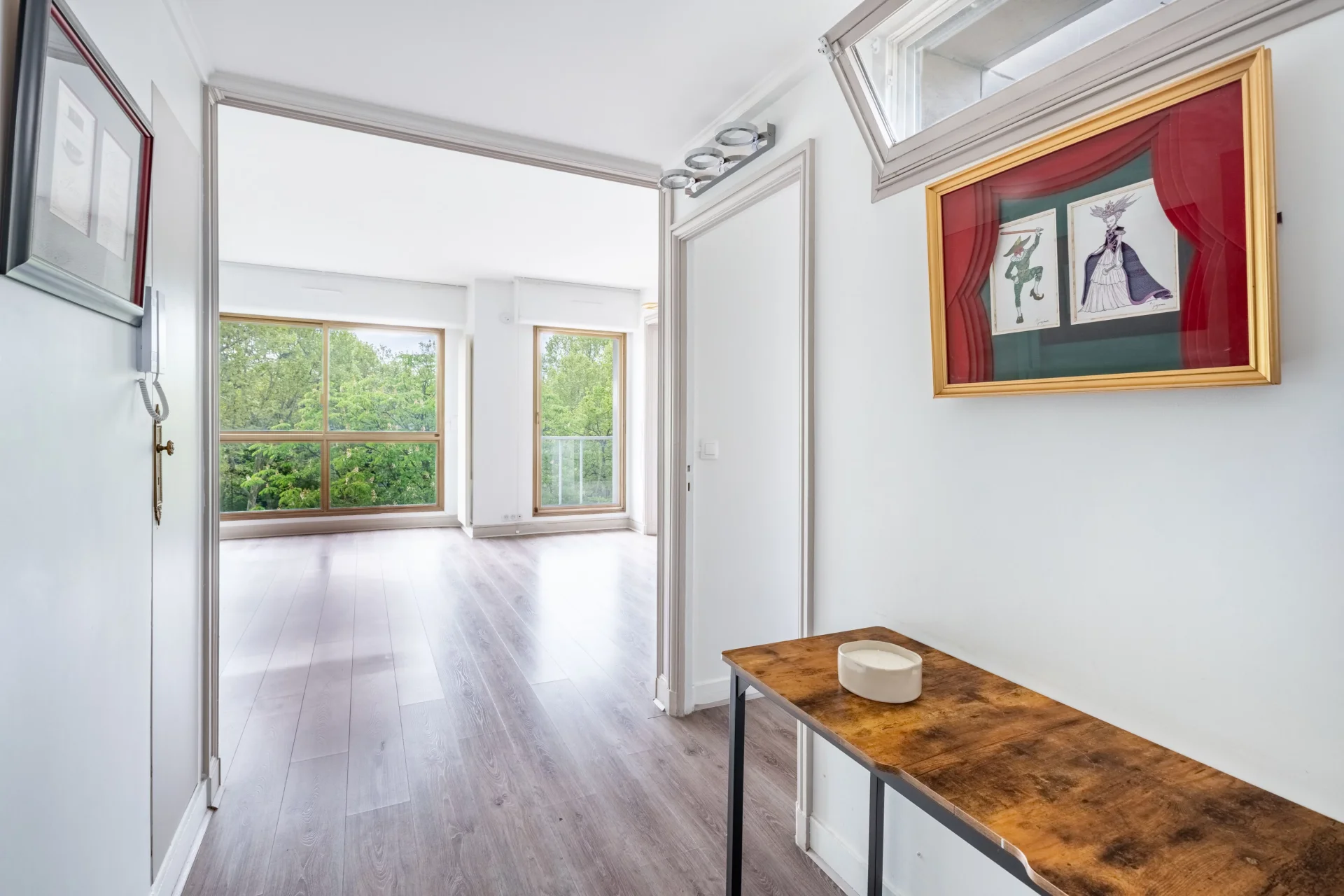 Situé à Neuilly-sur-Seine – Château, au quatrième étage d’un immeuble de bon standing avec gardien, cet appartement de 109,85 m² loi Carrez bénéficie d’un environnement calme, lumineux et sans vis-à-vis, avec une vue dégagée sur la Tour Eiffel.