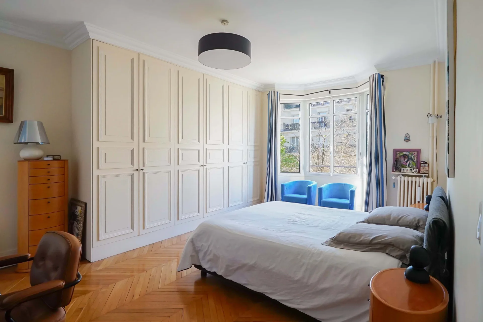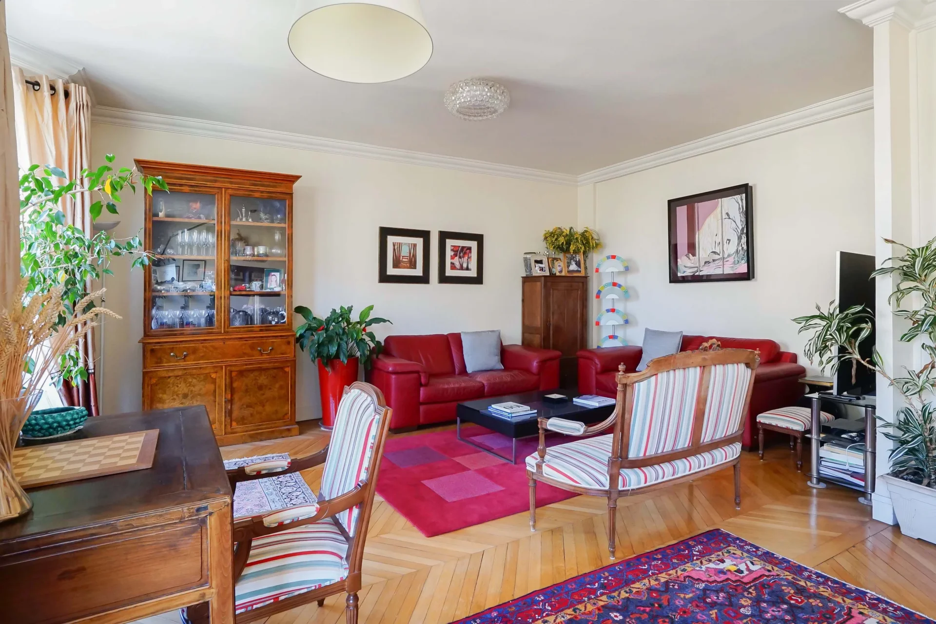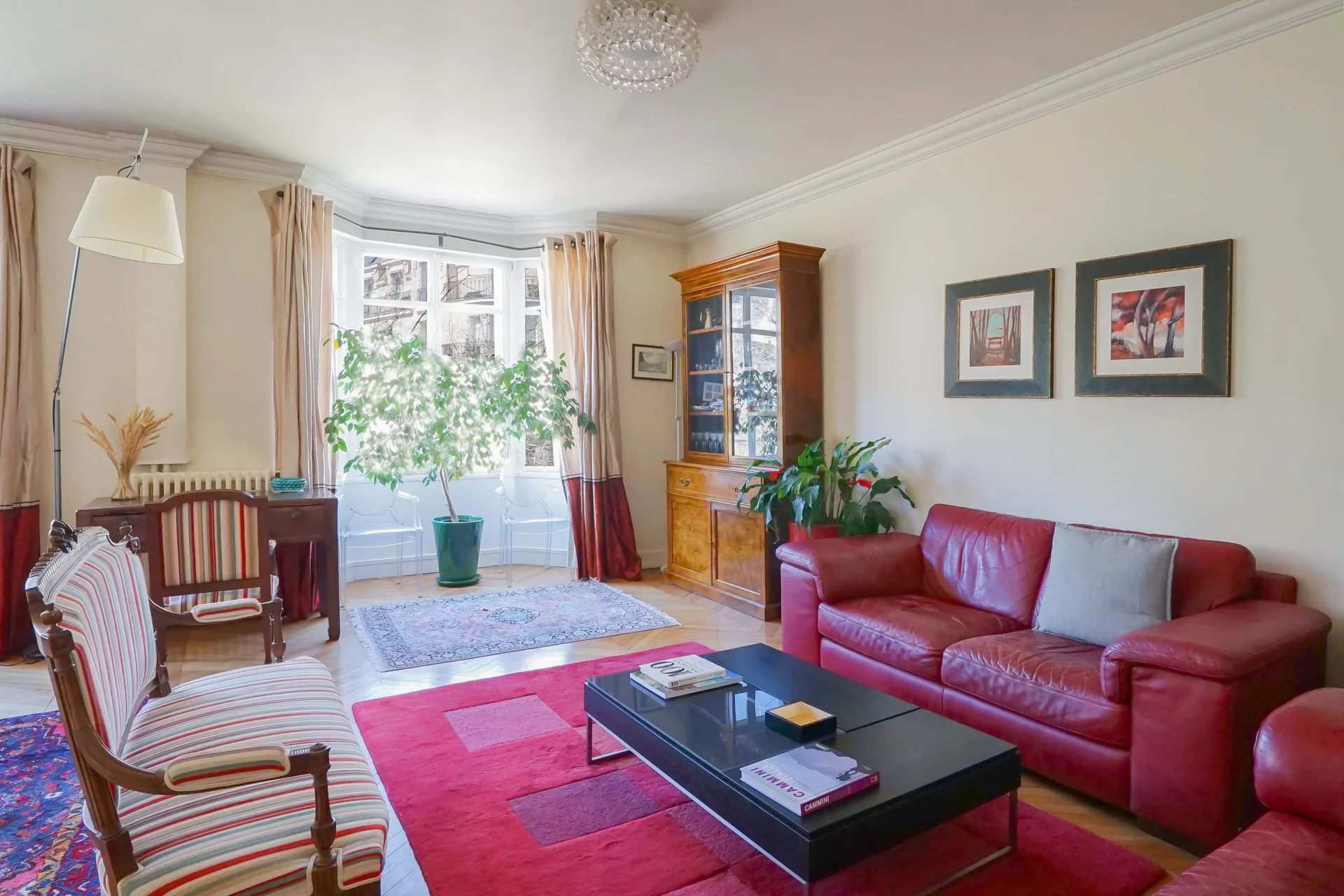 À proximité immédiate du parc Sainte-Périne et de toutes les commodités, cet appartement familial et de réception de 169,59m² loi Carrez se situe au cinquième étage par ascenseur d’un élégant immeuble Art déco avec gardien.