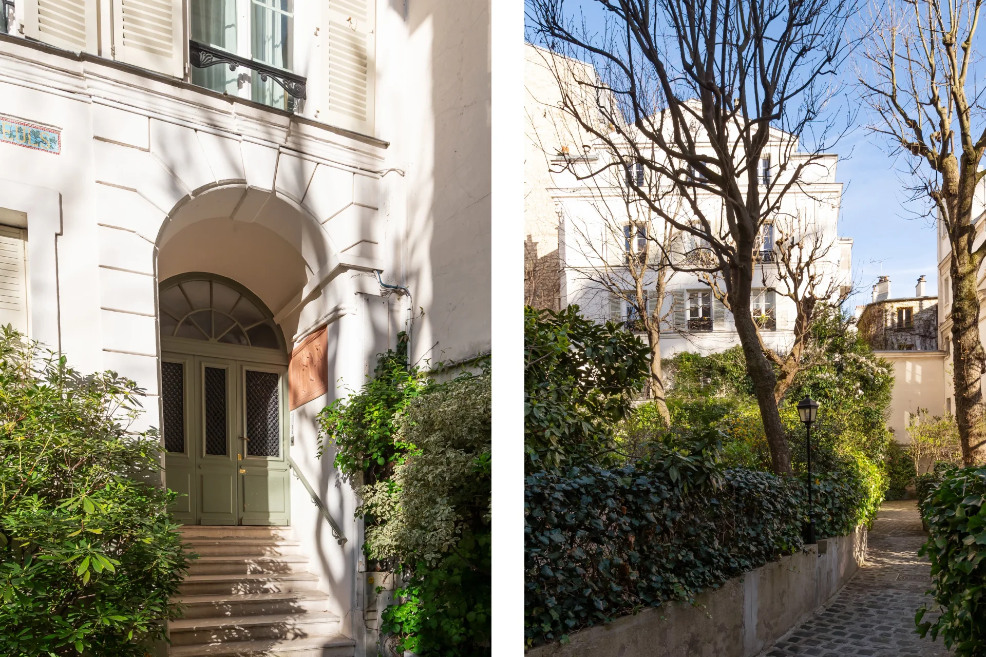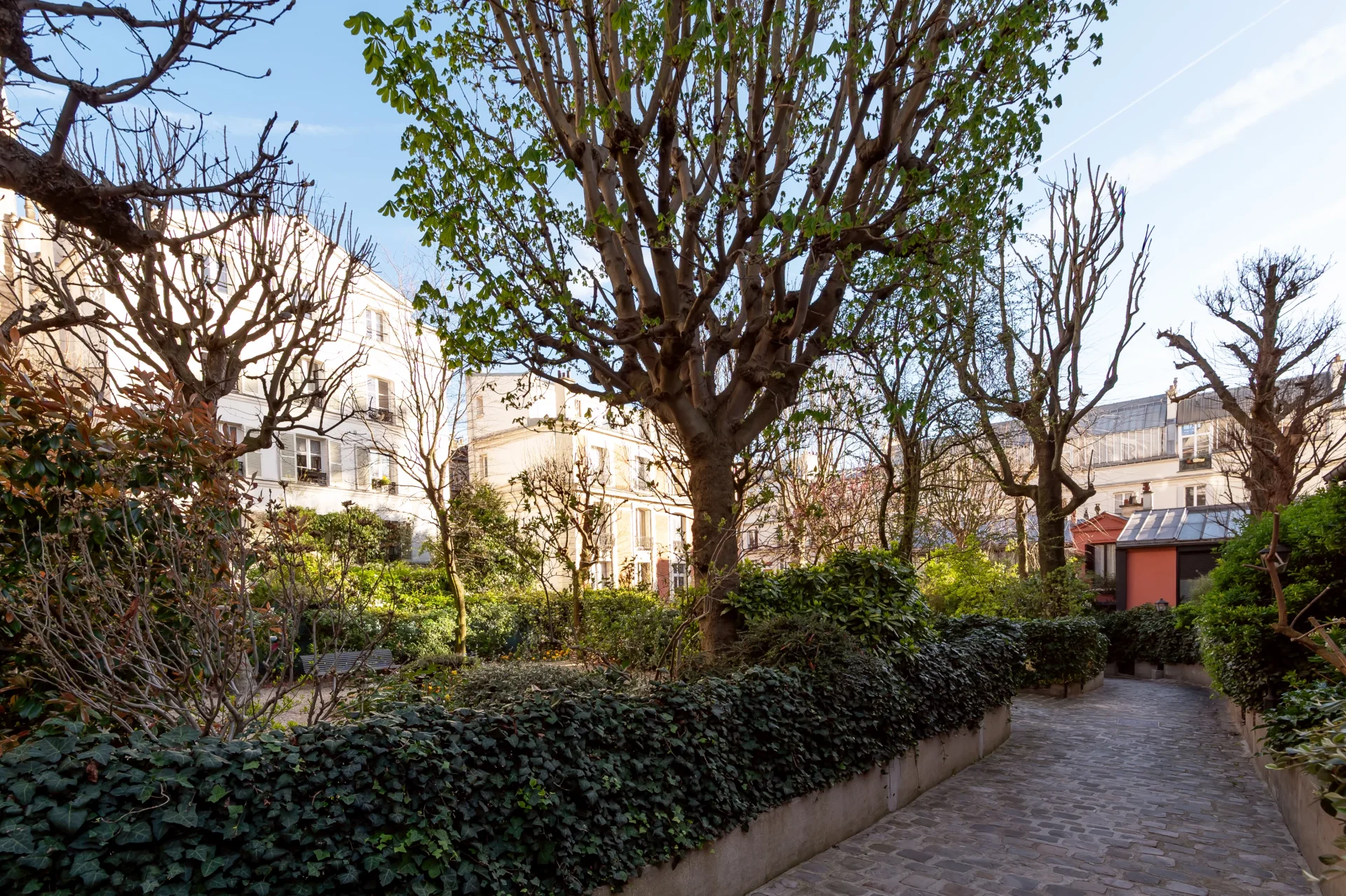 Idéalement situé dans l’une des plus belles copropriétés de Montmartre, à l’abri des regards, Villa des Platanes.