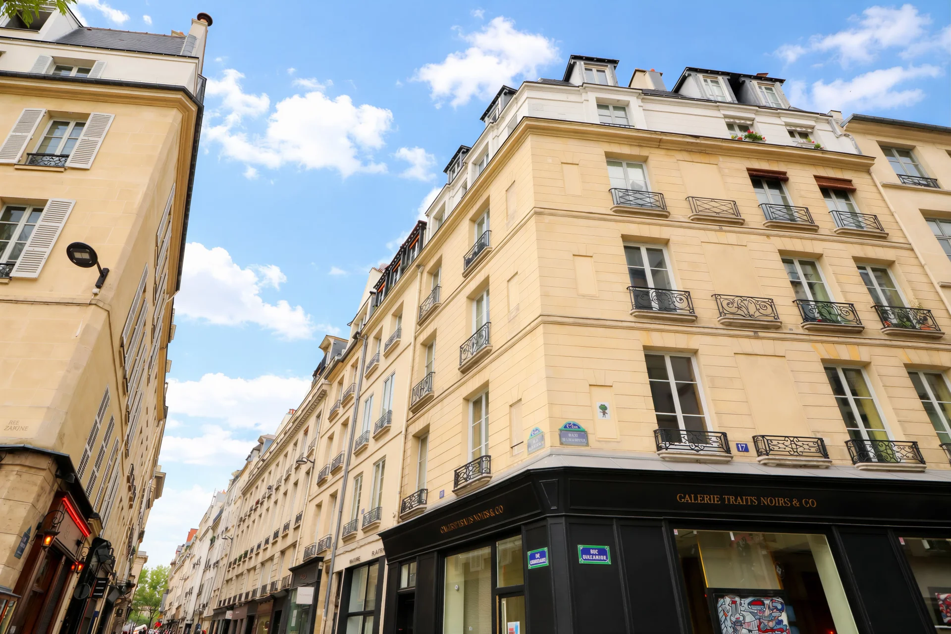 À deux pas de la Seine et de la Monnaie de Paris, au cœur d’une rue emblématique du 6e arrondissement prisée pour ses galeries d’art et son atmosphère confidentielle, cet appartement de caractère de 37,80m² loi Carrez se situe au premier étage par escalier d’un immeuble ancien.