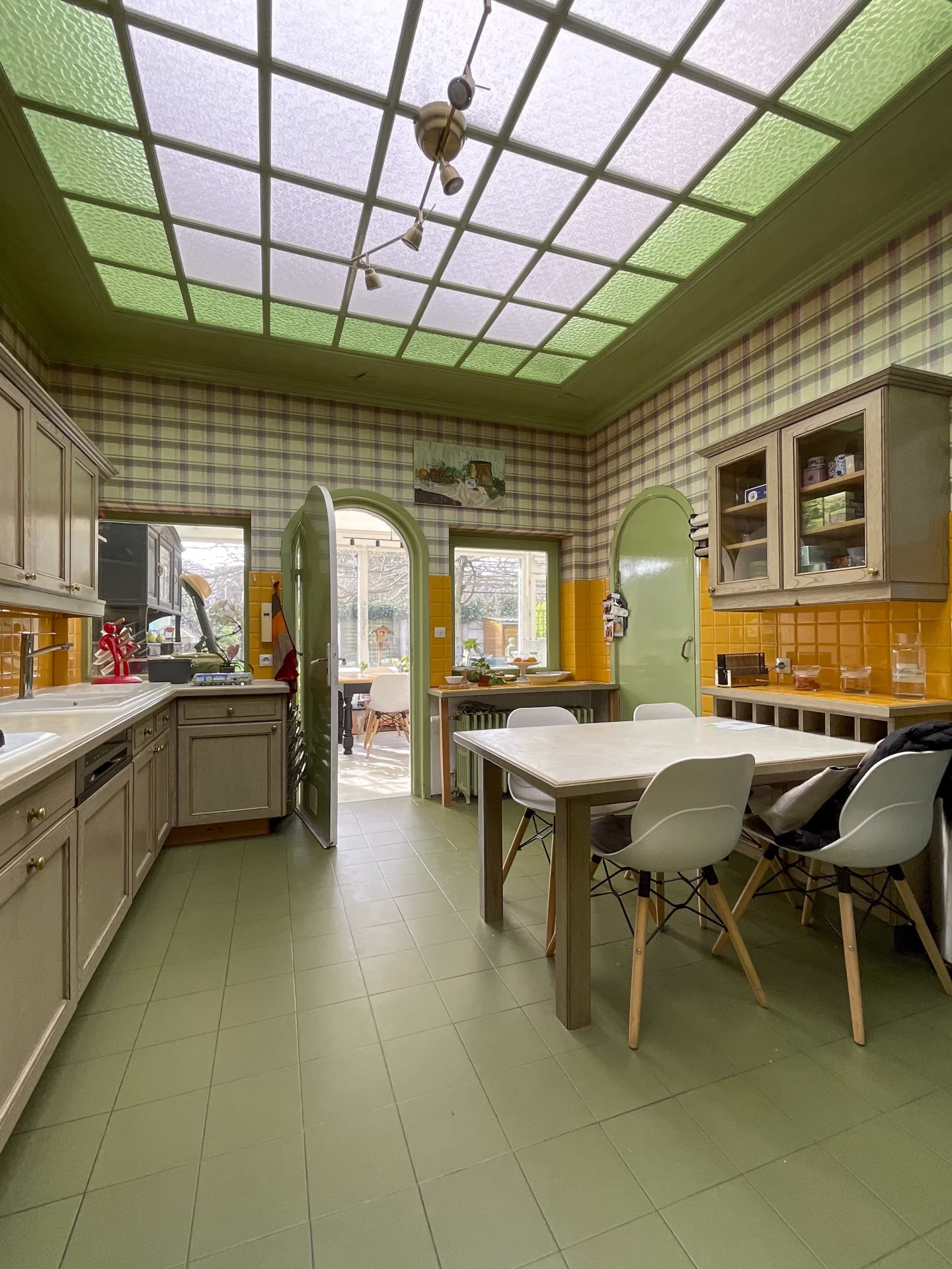 Dans le prolongement, un magnifique escalier central dessert les étages. Le rez-de-chaussée comprend également un vestiaire avec lave-mains, une salle d’eau, une cuisine ainsi qu’une véranda lumineuse ouverte sur le jardin.