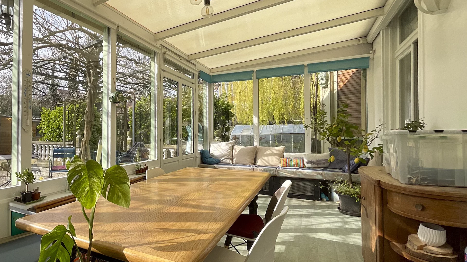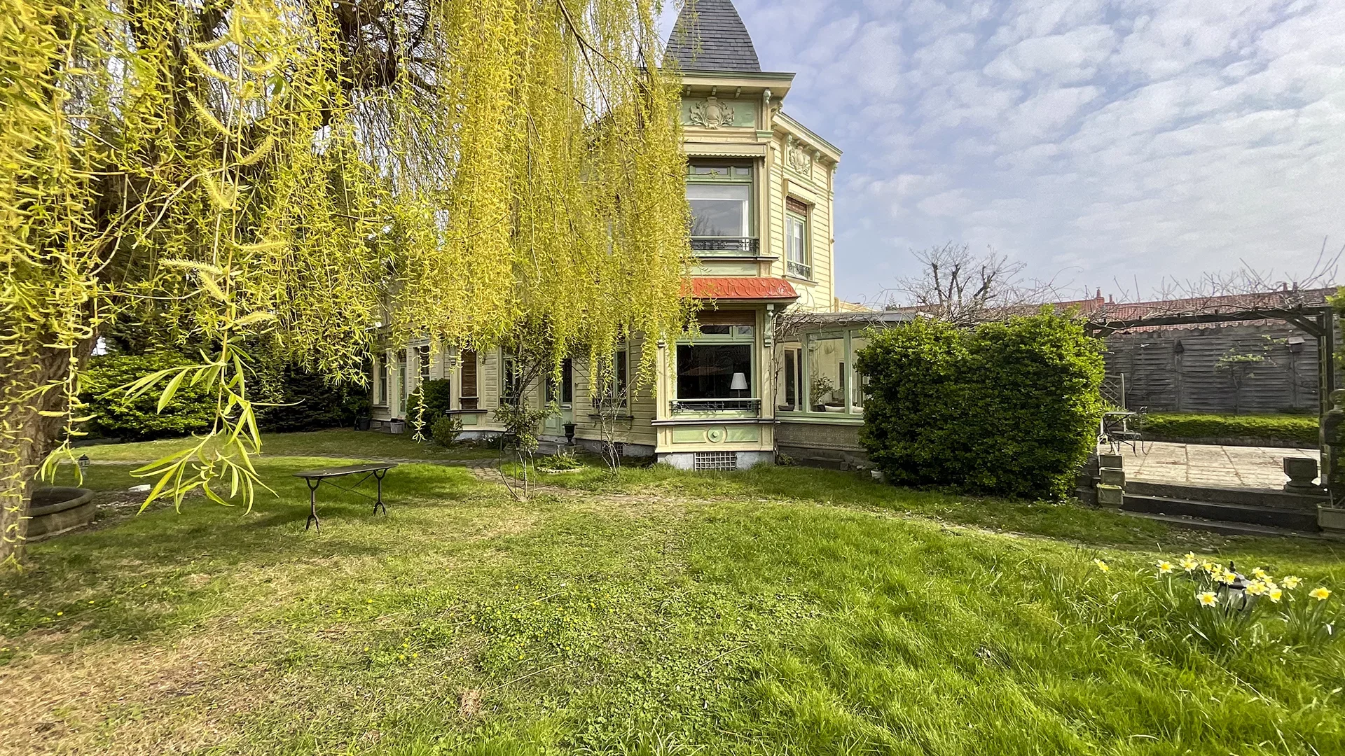 Côté extérieur, vous profiterez d’une terrasse exposée plein sud, ainsi que d’un jardin orienté ouest, agrémenté d’un superbe saule pleureur et d’une fontaine, offrant un cadre verdoyant et paisible.