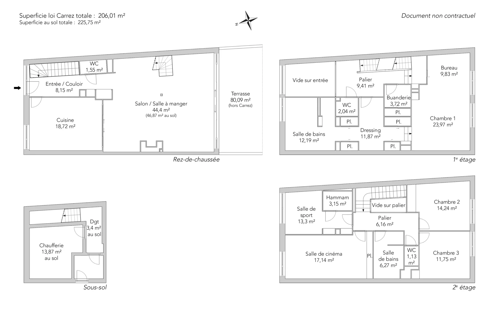 - Habitable : 206,01 m² Total : 225,75 m²
