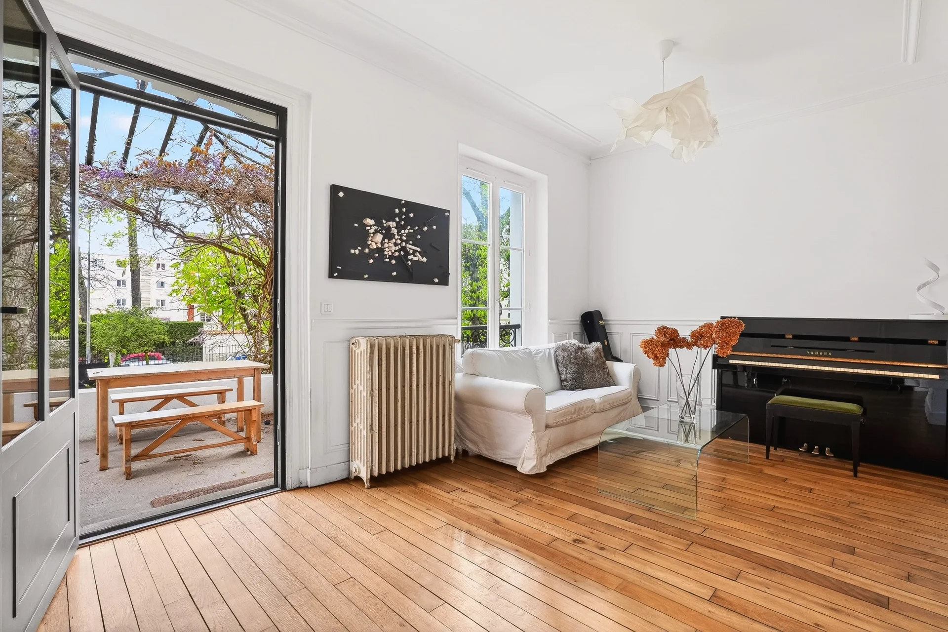 Les marquises et verrières anciennes rappellent le raffinement des maisons du Vésinet, tandis que la rénovation soignée confère à l’ensemble un caractère unique et clés en main.