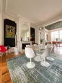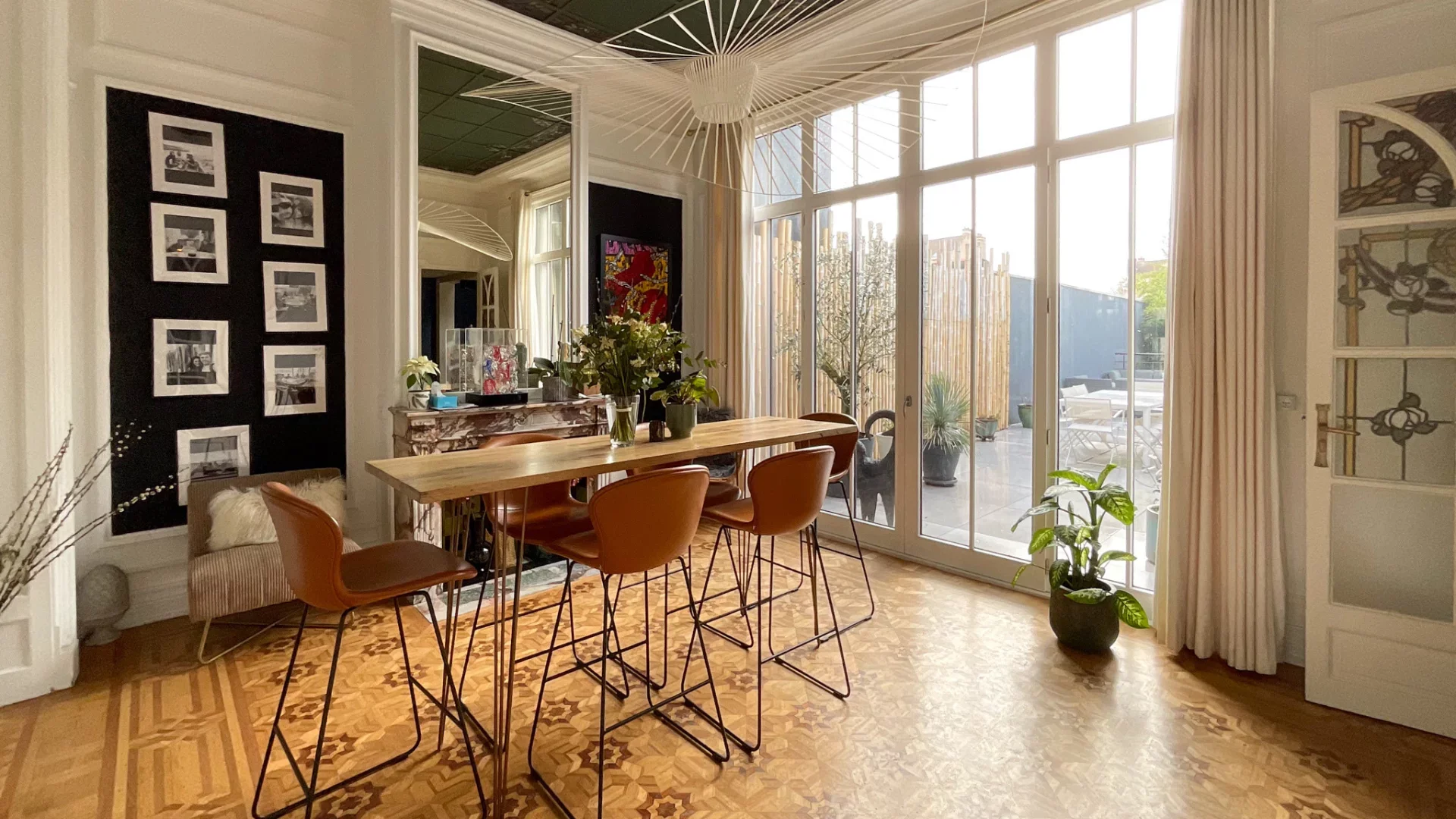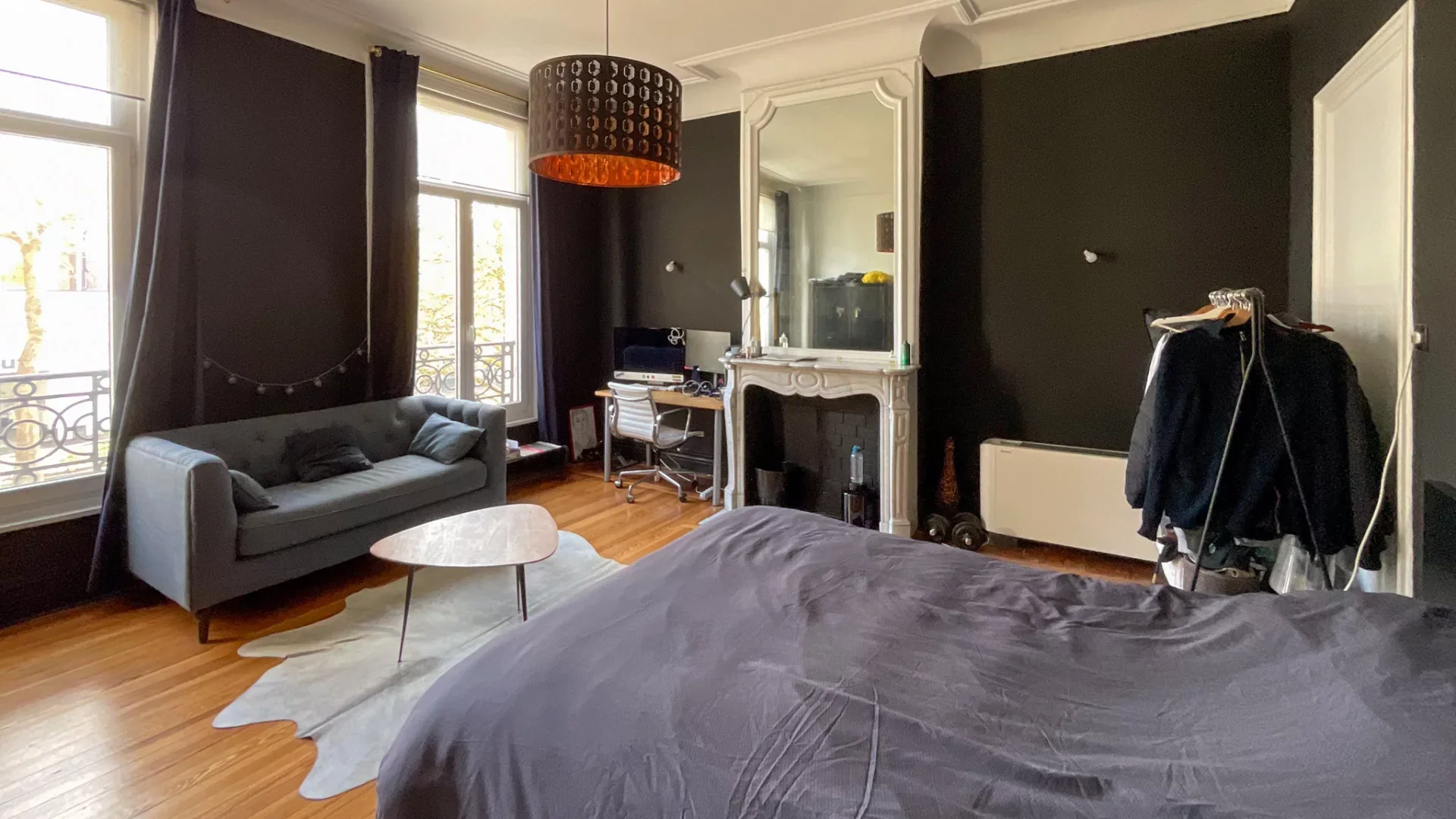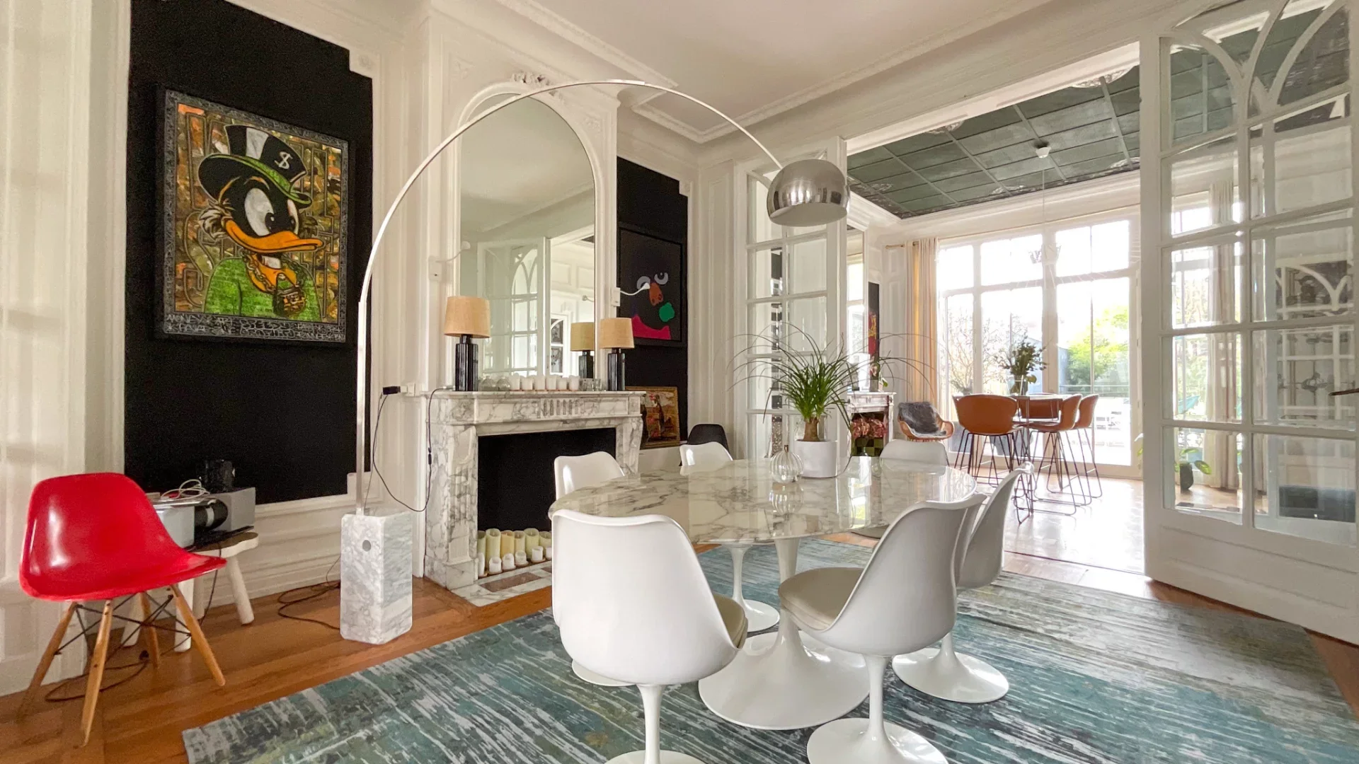 La pièce de vie principale propose un double séjour et un large salon avec cheminée. Cet espace de plus de 80m² lumineux et convivial a conservé tous les attributs de caractère des maisons bourgeoises tels que parquet ancien, moulures et cheminées en marbre.
