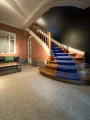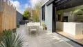 Dès l’entrée, un vaste porche permet d’accéder à un grand garage pouvant accueillir deux véhicules et ouvrant sur le jardin. À ce niveau également, un studio indépendant avec bureau, chambre, dressing, salle de bains et toilettes constitue un espace autonome parfait pour accueillir ses proches.