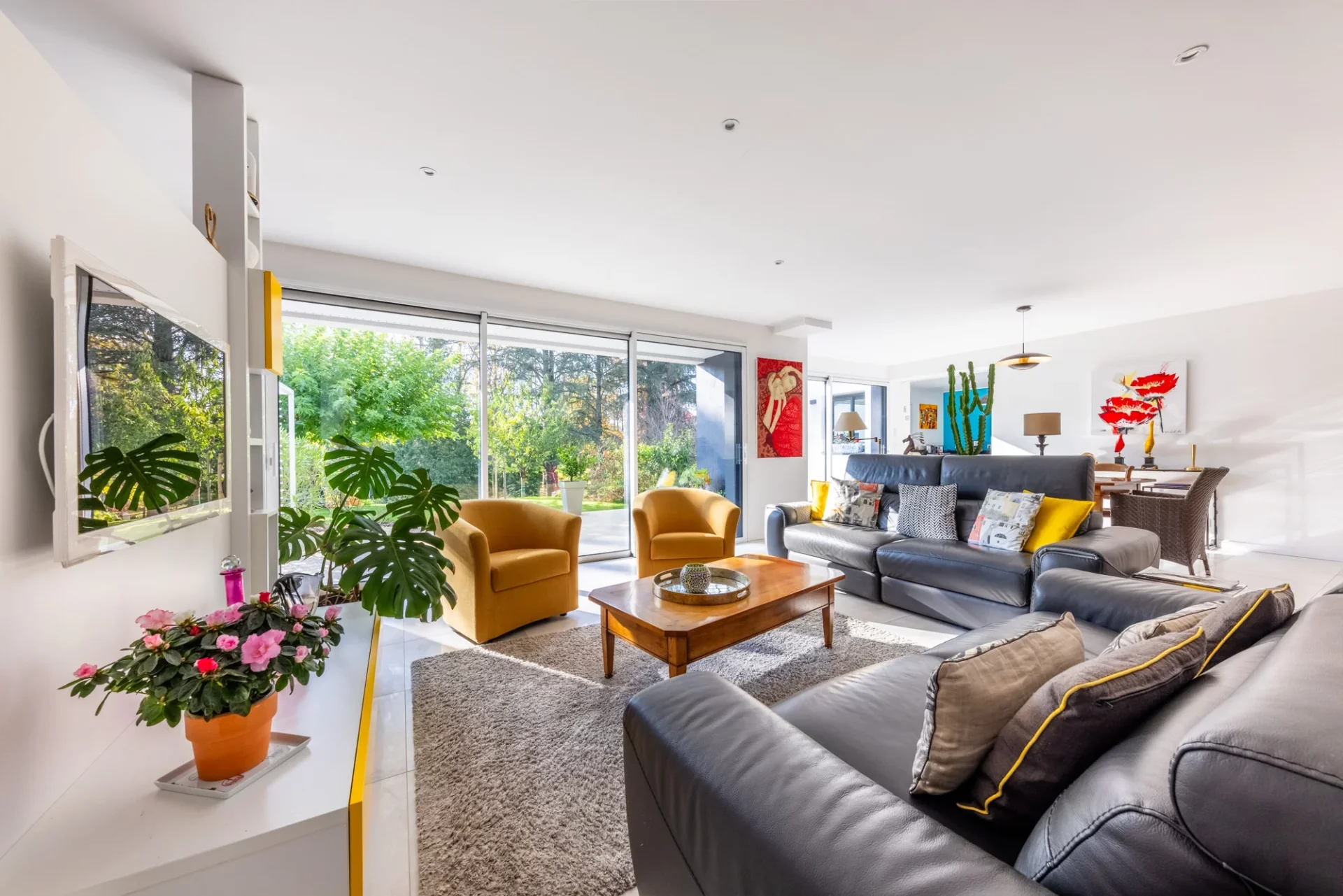 L’extérieur de la maison a été aménagé avec goût, un écrin de verdure sans vis-à-vis en plein cœur du centre-ville qui vient sublimer le côté architectural de l'ensemble.