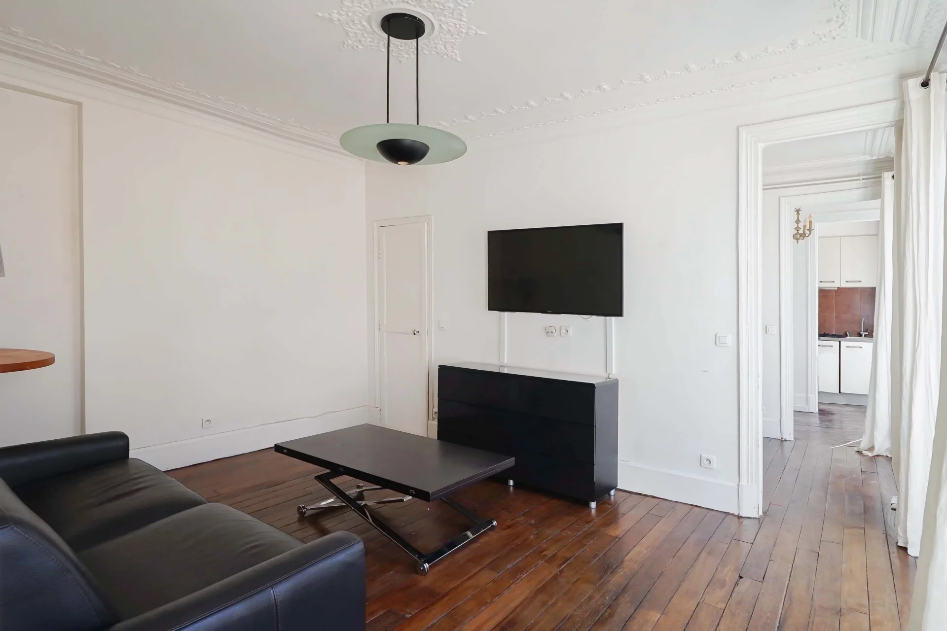 Il comprend une entrée, une cuisine, un séjour, une chambre, une salle de douche et des toilettes séparées.