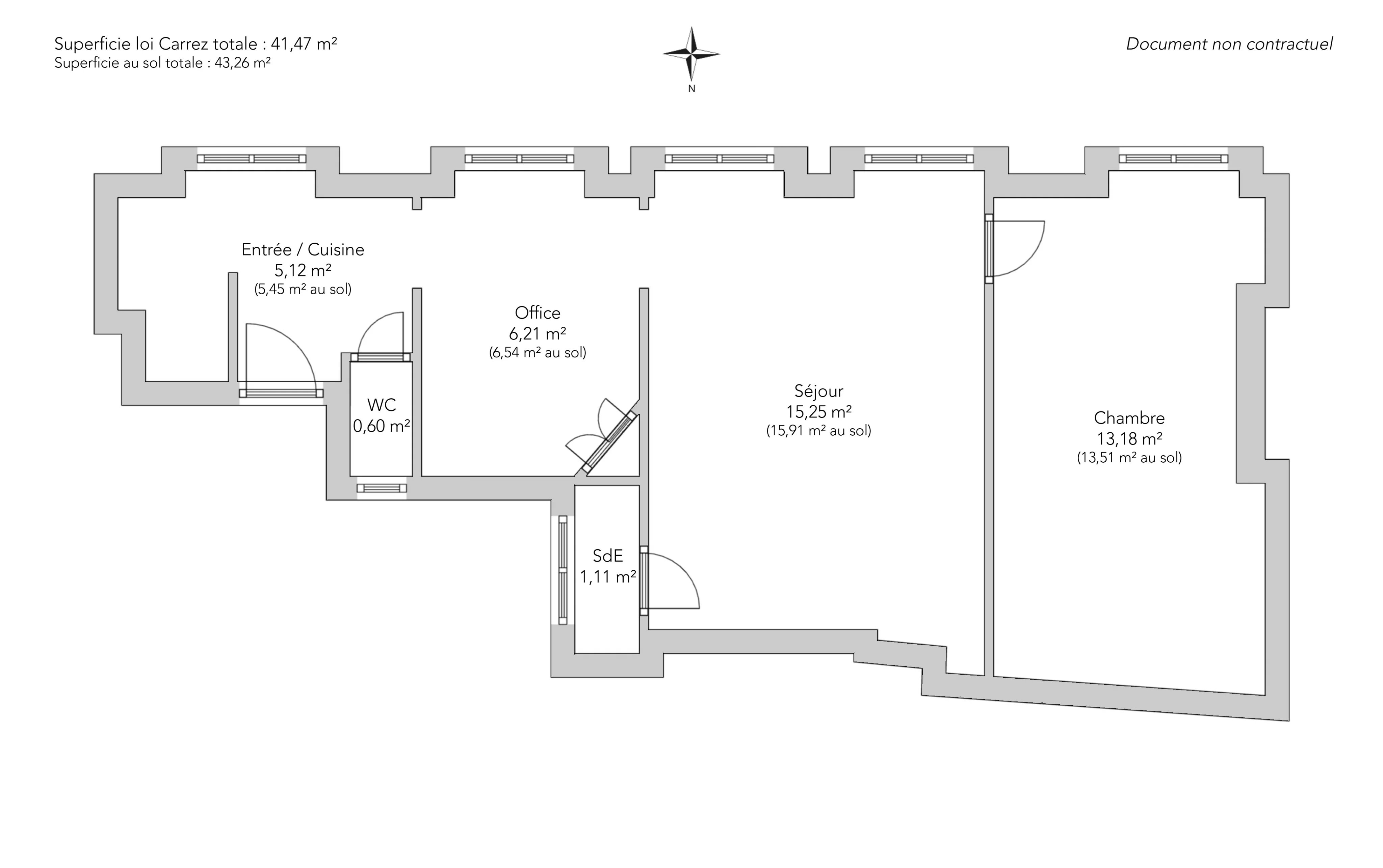 - Habitable : 41,47 m² Total : 43,26 m²
